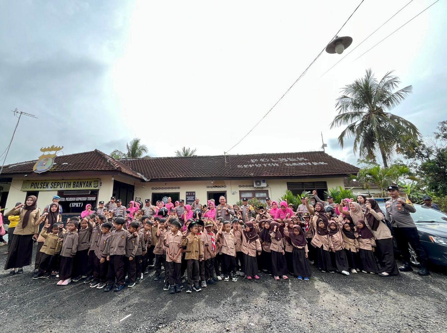 tribratanews.lampung.polri.go.id. Lampung Tengah, Senin 09 Pebruari 2026 – Suasana di Mako Polsek Seputih Banyak pada Senin pagi (9/2/26) tampak berbeda dari biasanya.Bukan oleh aktivitas kepolisian, melainkan tawa dan keceriaan ratusan anak TK yang menyerbu markas Polisi.