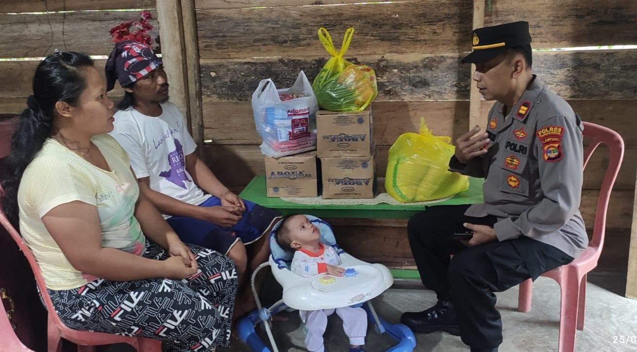 Kali ini, dalam rangka Hari Bhayangkara ke 76, yang dikunjungi Kapolsek Iptu Bambang adalah keluarga Fikri Maulana, anak berusia 1 tahun 10 bulan penderita penyakit paru-paru dan tenggorokan di Pekon Negeri Agung Kecamatan Talang Padang, Minggu, (26/6/2022).
