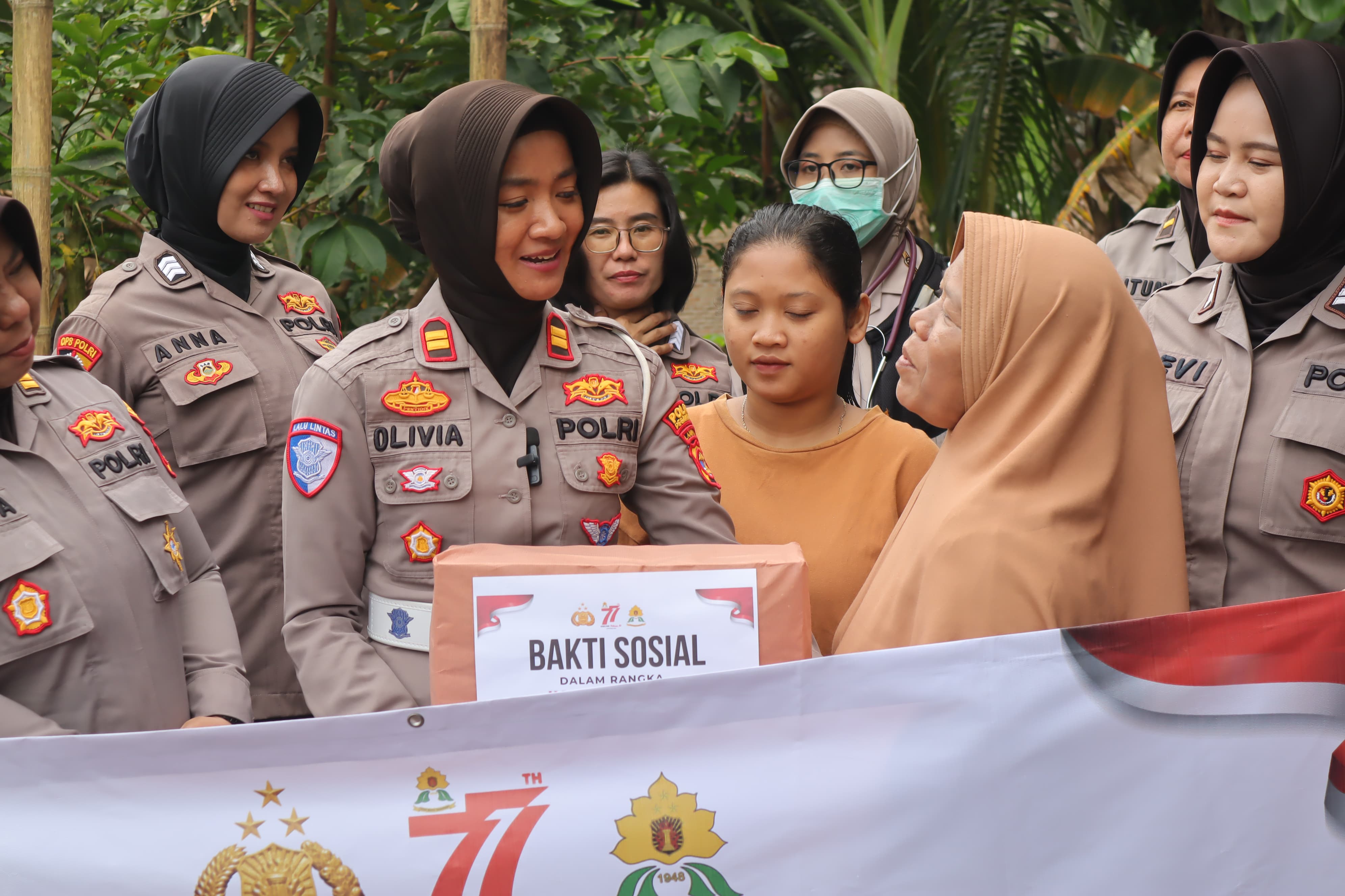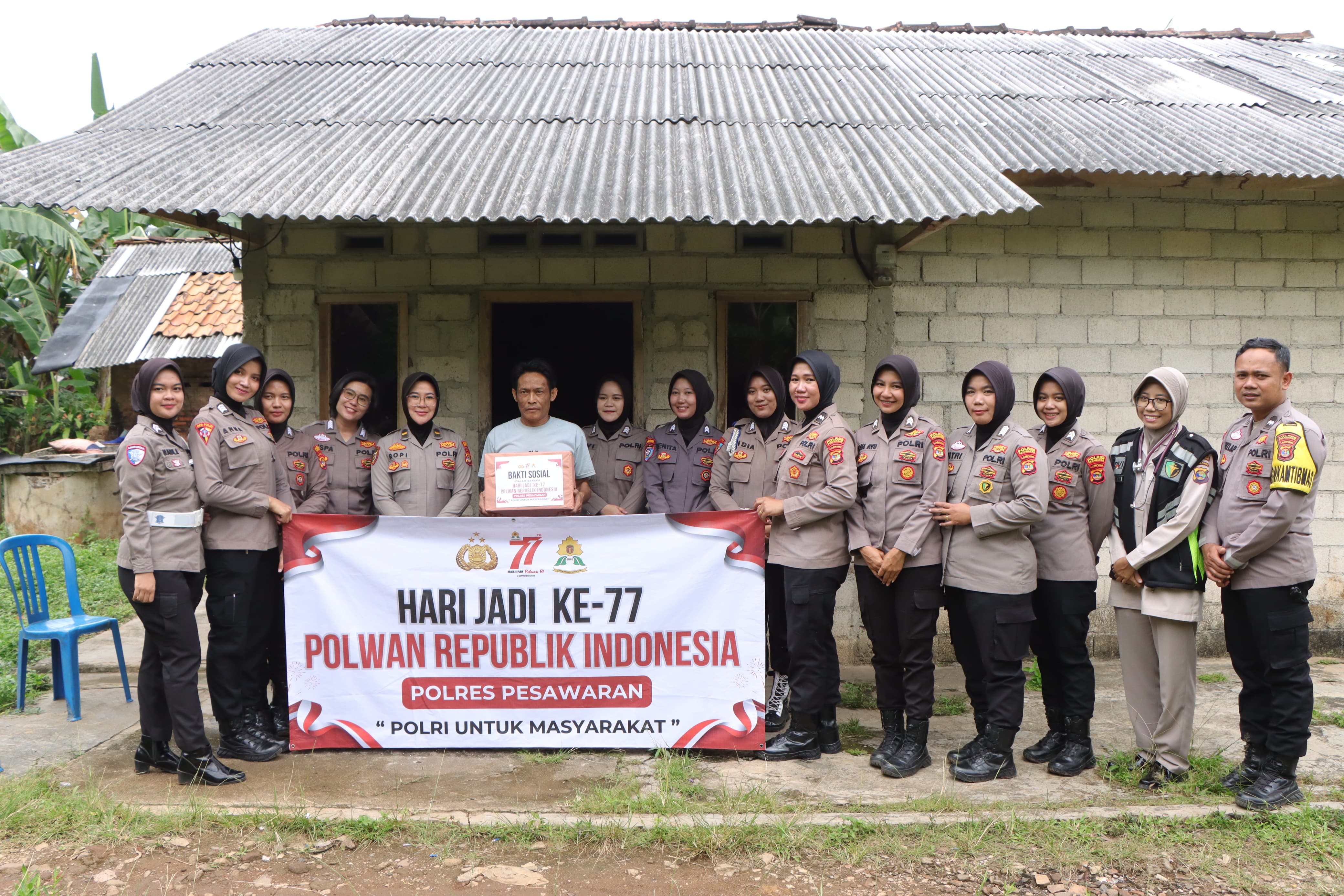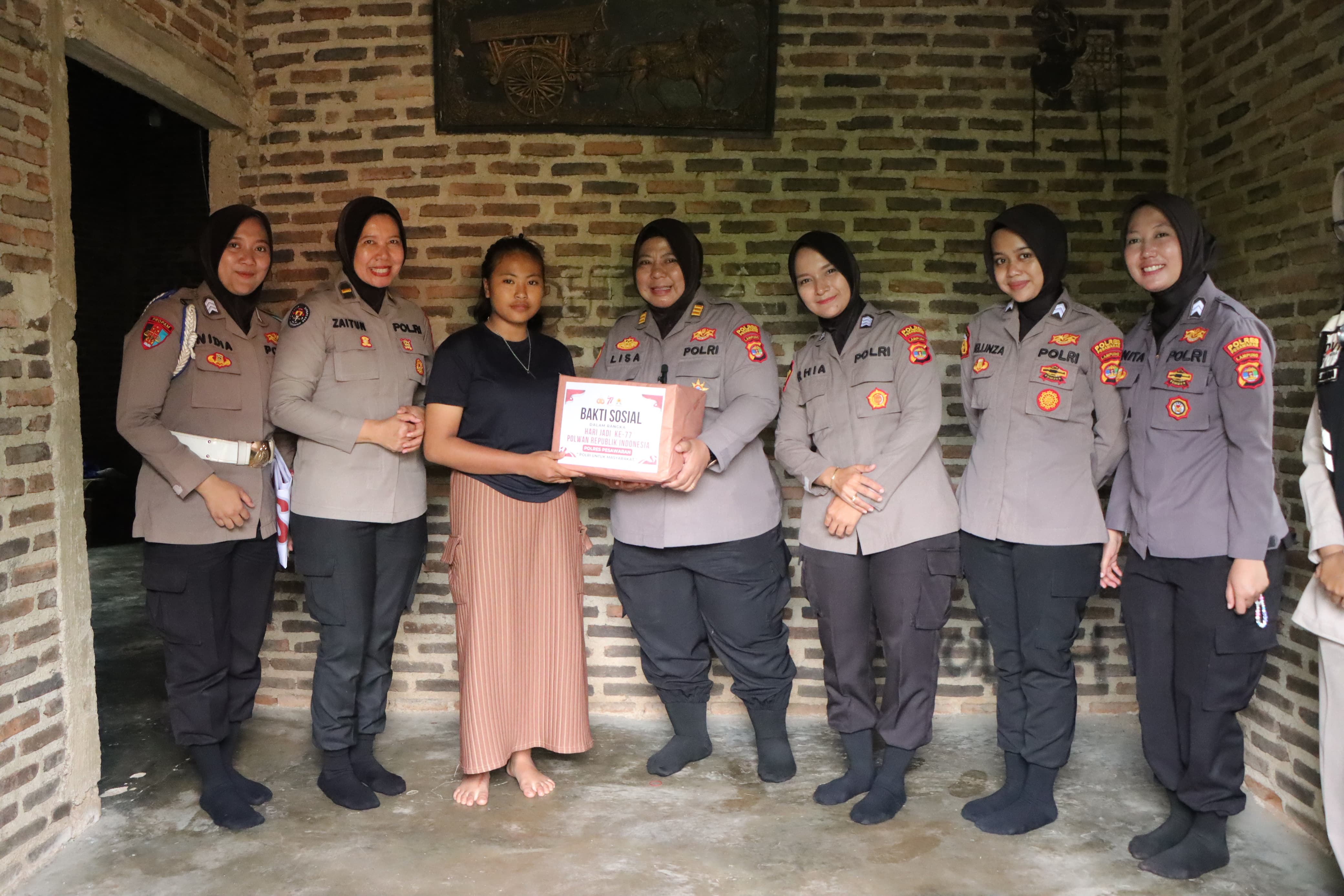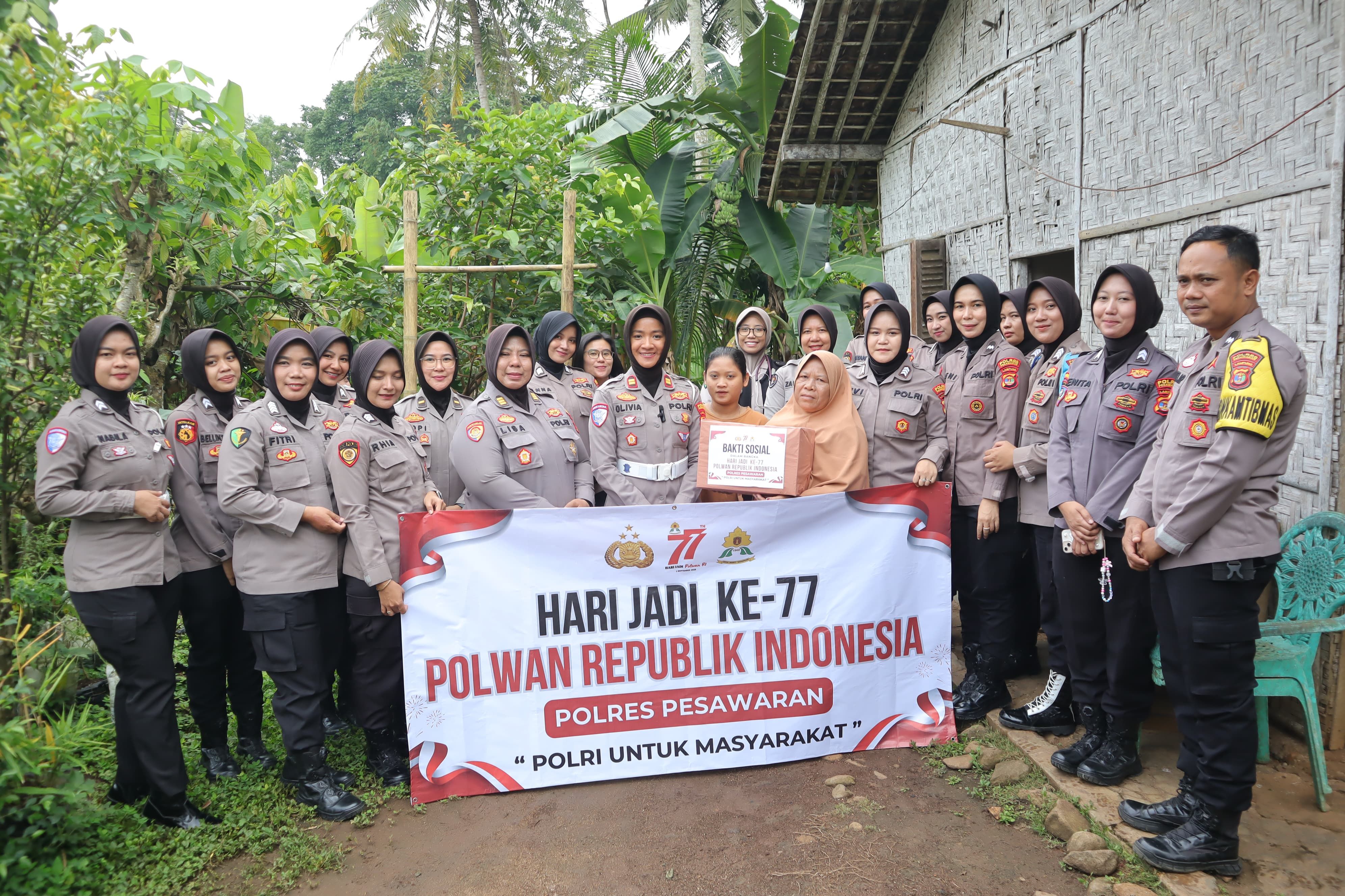 tribratanews.lampung.polri.go.id Pesawaran Jumat 29 Agustus 2025. Polres Pesawaran, Polda Lampung – Dalam rangka memperingati Hari Ulang Tahun (HUT) Polwan Republik Indonesia ke-77 yang diperingati setiap tanggal 1 September, jajaran Polwan Polres Pesawaran melaksanakan kegiatan bakti sosial berupa pembagian paket sembako kepada warga Desa Wiyono, Dusun Way Linti, Kecamatan Gedong Tataan, Kabupaten Pesawaran, Kamis (28/8/2025) Pagi.