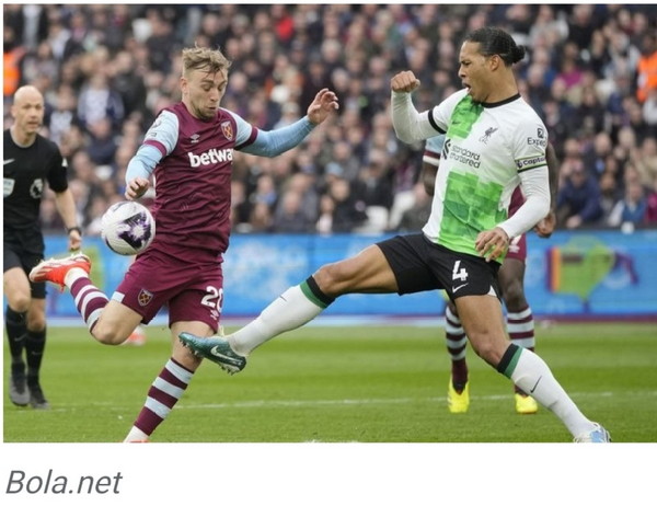 https://tribratanews.lampung.polri.go.id. Jakarta. Liverpool kembali terpeleset di pekan ke-35 Premier League 2023/2024. Berhadapan dengan West Ham, The Reds dipaksa bermain imbang dengan skor 2-2, Sabtu (28/4/24).Pertandingan yang digelar di markas West Ham ini dimulai dengan tempo sedang. Kedua tim sama-sama berhati-hati untuk membangun serangan. Dua gol West Ham di laga ini dicetak oleh Jarrod Bowen dan Michail Antonio. Sementara dua gol Liverpool dicetak Andrew Robertson dan gol bunuh diri Alphonse Areola. Berkat hasil ini Liverpool tertahan di peringkat tiga dengan raihan 75 poin. Sementara West Ham juga tertahan di peringkat delapan dengan raihan 49 poin Sumber :