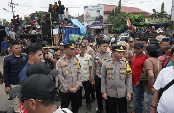 tribratanews.lampung.polri.go.id. Lampung Utara, Jumat 25 Januari 2025 - Tim gabungan Polres Lampung Utara dan Brimob Polda Lampung amankan aksi damai Persatuan Petani Singkong di Bundaran Tugu Payan Mas, Bundaran Tugu Alamsyah RPN, PT. TWBP Sinar Laut Kali Cinta dan PT. BW Pakuan Agung Kec. Muara Sungkai Kab. Lampung Utara, Kamis (23/1/25).Aksi tersebut di gelar untuk menuntut Meminta PJ. Bupati Lampung Utara untuk menutup pabrik tapioka yang ada diwilayah Kabupaten Lampung Utara dan menuntut pihak perusahaan agar mengikuti surat keputusan bersama Gubernur Lampung terkait harga Ubi Kayu terendah Rp. 1.400/kg dengan potongan refaksi sebesar 15 persen. Sebelum melaksanakan pengamanan personel Polres Lampung Utara Polda Lampung melakukan apel persiapan yang di pimpin oleh Kapolres Lampung Utara AKBP Deddy Kurniawan. Kapolres Lampung Utara AKBP Deddy Kurniawan menjelaskan, Pada saat pelaksanaan pengamanan Unjuk Rasa tidak ada personil yang membawa dan menggunakan senjata api. "Komando perintah dalam pelaksanaan pengamanan unjuk rasa ada pada Kapolres Lampung Utara," kata Kapolres. Jaga keselamatan dan kesehatan dan jaga nama baik Polres Lampung Utara, jangan sampai melakukan hal yang tidak diperlukan yang dapat merusak nama baik Polres Lampung Utara. Kapolres juga menghimbau kepada peserta aksi Alagar tidak mengganggu ketertiban umum pada saat pelaksanaan aksi. "Sepenuhnya apa yang menjadi aspirasi rekan-rekan semu sudah difasilitasi, namun saya minta tolong jangan sampai mengganggu aktivitas yang lain," pinta Kapolres AKBP Deddy. Selain pengamanan terbuka, Polres Lampung Utara juga mengerahkan personel tertutup, dan patroli mobile yang bertugas melakukan upaya pencegahan terhadap segala bentuk ancaman yang dapat mengganggu jalannya aksi tersebut. "Alhamdulillah, dari awal hingga selesai kegiatan, semua berjalan aman, damai dan lancar," tambah Kapolres. (*)