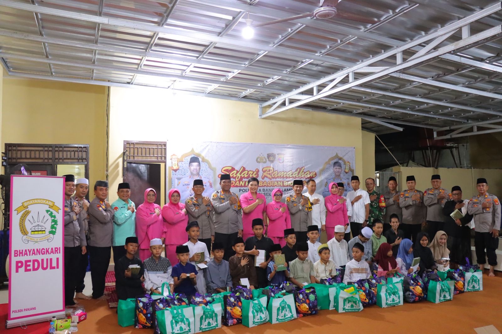 tribratanews.lampung.polri.go.id Bandar Lampung, Minggu 01 Maret 2026 - Suasana penuh kebersamaan mewarnai kegiatan Safari Ramadan yang digelar di Polsek Panjang, Sabtu (28/2/2026). Kegiatan tersebut diisi dengan tausiyah keagamaan, buka puasa bersama anak yatim piatu dari Pondok Pesantren Assalawiyah, serta dihadiri personel Polsek, Bhayangkari, unsur uspika, dan masyarakat setempat.Kegiatan Safari Ramadan ini menjadi momentum untuk mempererat silaturahmi antara kepolisian dan masyarakat. Dalam sambutannya, Kapolresta Bandar Lampung, Kombes Pol Alfret Jacob Tilukay menyampaikan bahwa kegiatan tersebut merupakan wujud sinergi dan kebersamaan dalam menjaga situasi keamanan dan ketertiban masyarakat, khususnya di wilayah Panjang dan umumnya di Kota Bandar Lampung.
