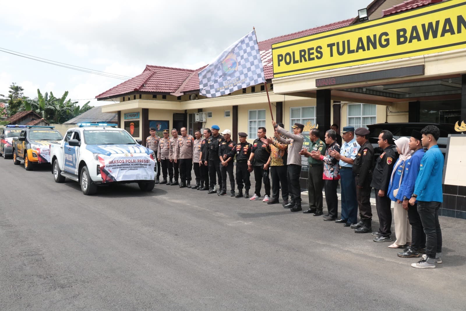 Tribratanews Lampung polri go id. Tulang Bawang, -Kapolres Tulang Bawang, Polda Lampung, AKBP Yuliansyah, SIK, MH, melepas secara simbolis rombongan bakti sosial (Baksos) Polri Presisi guna menyambut Bulan Suci Ramadhan 1446 H/2025 M yang berlangsung hari Kamis (27/02/2025), pukul 11.00 WIB s/d selesai, di lapangan Mapolres setempat.Kegiatan pelepasan Baksos Polri Presisi ini juga dihadiri oleh Pejabat Utama (PJU) Polres Tulang Bawang, Wakil Ketua DPRD Tulang Bawang, Sopi'i Azhari, SH, MH, perwakilan Lanud Pangeran M Bun Yamin, perwakilan Kodim 0426 Tulang Bawang, mahasiswa, aliansi BEM dan OKP. "Hari ini, saya didampingi PJU Polres, Wakil Ketua DPRD Tulang Bawang, perwakilan Lanud Pangeran M Bun Yamin, perwakilan Kodim 0426 Tulang Bawang, mahasiswa, aliansi BEM dan OKP secara simbolis melepas rombongan Baksos Polri Presisi guna menyambut Bulan Suci Ramadhan 1446 H/2025 M," ucap AKBP Yuliansyah. Menurutnya, kegiatan Baksos Polri Presisi ini merupakan wujud kepedulian dari Polri khususnya Polres Tulang Bawang bersama mahasiswa, aliansi BEM dan OKP kepada masyarakat kurang mampu secara finansial yang ada di wilayah hukumnya menjelang Bulan Suci Ramadhan 1446 H/2025 M. "Kami bersama mahasiswa, aliansi BEM dan OKP, menggelar Baksos Polri Presisi guna menyambut Bulan Suci Ramadhan 1446 H/ 2025 M untuk berbagi langsung kepada masyarakat yang benar-benar membutuhkan, sehingga mereka merasa senang dan bahagia mendapatkan bantuan," papar perwira Alumni Akpol 2006. Kapolres menambahkan, ada 3 (tiga) lokasi yang menjadi sasaran utama kegiatan Baksos Polri Presisi Polres Tulang Bawang bersama mahasiswa, aliansi BEM dan OKP yang digelar kali ini, dengan rincian sebagai berikut : 1. Yayasan Yazid Berlian Islam di Kampung Tiuh Tohou, Kecamatan Menggala, Kabupaten Tulang Bawang, dilaksanakan baksos sebanyak 65 (enam puluh lima) paket sembako oleh Polres Tulang Bawang bersama PMII Tulang Bawang.