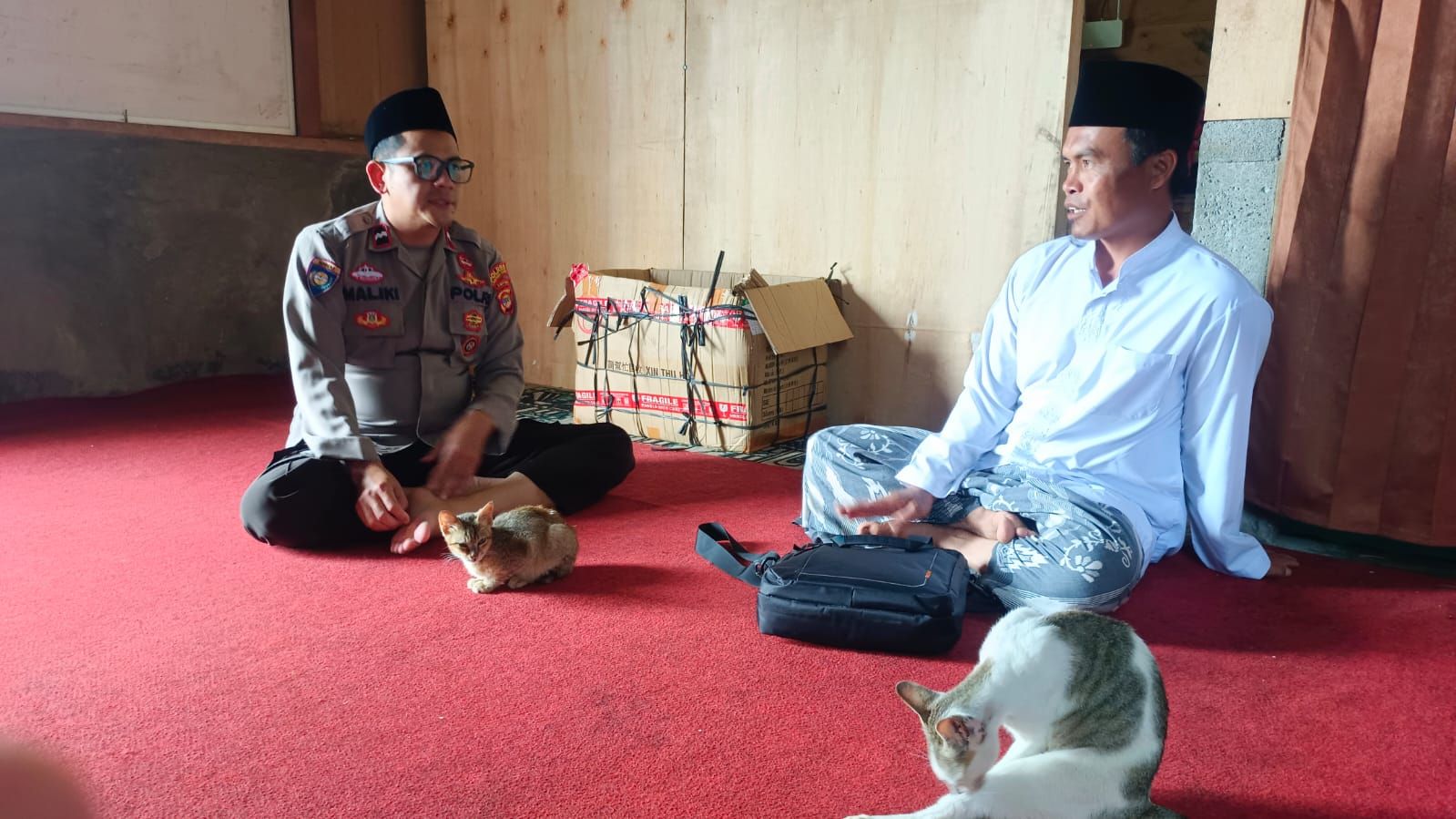 tribratanews.lampung.polri.go.id. Lampung Barat Sabtu 04 Oktober 2025 – Satuan Binmas Polres Lampung Barat melaksanakan kegiatan sambang kepada tokoh agama sekaligus pimpinan Pondok Pesantren (Ponpes) Nurul Badriyah, Ustadz Suherman, S.Pd., di kediamannya yang berlokasi di Pekon Watas, Kecamatan Balik Bukit, pada Sabtu (04/10/2025) pukul 14.00 WIB.Kegiatan ini bertujuan mempererat silaturahmi antara kepolisian dengan tokoh agama serta membangun sinergi dalam menjaga keamanan dan ketertiban masyarakat (kamtibmas). Dalam kesempatan tersebut, personel Sat Binmas menyampaikan imbauan kepada tokoh agama agar dapat meneruskan pesan kepada masyarakat untuk tetap bijak dalam menerima informasi, khususnya dari media sosial. Hal ini penting dilakukan agar masyarakat tidak mudah terprovokasi oleh isu-isu yang mengarah pada tindak kekerasan, permusuhan, maupun kebencian. Kapolres Lampung Barat, AKBP Rinaldo Aser, S.H., S.I.K., M.Si., melalui Kasat Binmas Polres Lampung Barat, AKP Samsul Bahri, S.A.P., M.M., mengatakan kegiatan sambang ini merupakan upaya preemtif dalam menjaga kondusifitas wilayah. “Kami berharap tokoh agama dapat berperan aktif dalam menyampaikan pesan-pesan kamtibmas kepada masyarakat, sehingga tercipta suasana aman, damai, dan sejuk di Lampung Barat,” ungkap AKP Samsul Bahri.