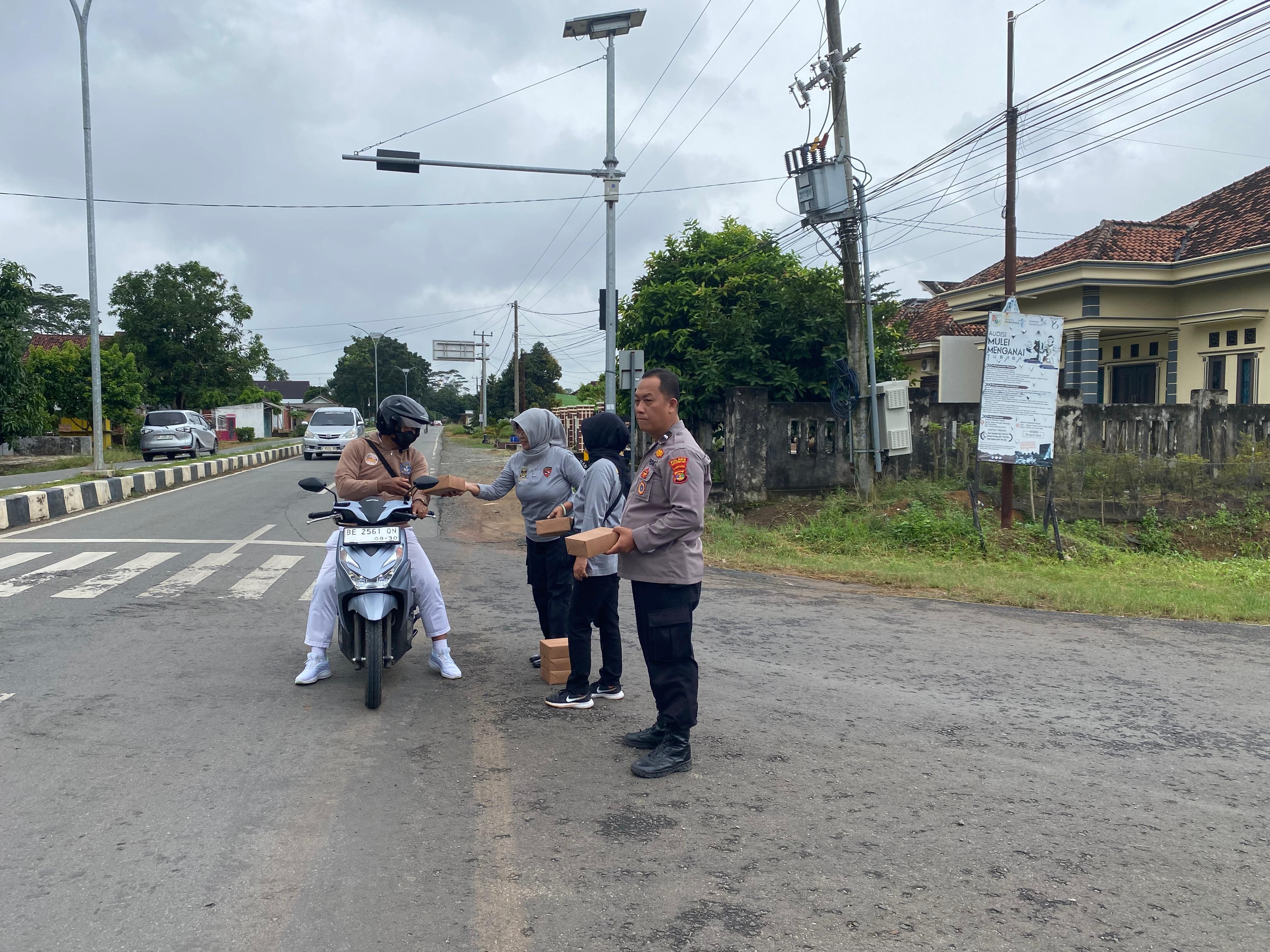 tribratanews.lampung.polri.go.id Tulang Bawang Barat, Minggu 01 Pebruari 2026- Dalam rangka mempererat hubungan Polri dengan masyarakat, Sat Binmas Polres Tubaba bersama KBPP Polri Resort Tubaba melaksanakan kegiatan Sahabat Binmas (Selalu Hadir Berbuat Bermanfaat) melalui program Jumat Berkah Berbagi dengan membagikan 50 nasi kotak kepada para pengendara kendaraan yang melintasi di jalan Raya Panaragan Jaya Kec. Tulang Bawang Tengah Kab. Tulang Bawang Barat.Jumat (30/01/2026).Kegiatan ini dilaksanakan atas arahan dan dukungan Kapolres Tulang bawang barat AKBP Sendi Antoni, S.IK.,M.I.K yang senantiasa menekankan pentingnya kepedulian sosial dan kedekatan Polri dengan masyarakat sebagai wujud nyata Polri Presisi yang Humanis. Pelaksanaan kegiatan dipimpin langsung oleh Kasat Binmas Polres Tubaba Akp Gutri bersama personel Sat Binmas dan Ketua KBPP Resort Tubaba Hartono beserta Pengurus KBPP Resort Tubaba. Kapolres Tulang bawang barat AKBP Sendi Antoni, S.IK.,M.I.K. menyampaikan apresiasinya atas kegiatan rutin yang dilakukan Sat Binmas dan KBPP Resort Tubaba KBPP Resort Tubabavini adalah bentuk nyata kepedulian Polri terhadap masyarakat. “Melalui kegiatan Sahabat Binmas, Polri berupaya hadir di tengah masyarakat tidak hanya sebagai pelindung, pengayom, dan pelayan, tetapi juga membawa manfaat nyata bagi masyarakat yang membutuhkan,” ujarnya. Kasat Binmas Polres Tubaba Akp Gutri menambahkan, kegiatan Jumat Berkah ini merupakan bentuk kepedulian sosial serta sarana mempererat silaturahmi antara Polri dan masyarakat. Dengan semangat berbagi dan keikhlasan, diharapkan kegiatan ini membawa keberkahan dan menjadi inspirasi untuk terus berbuat kebaikan di tengah masyarakat "Kami berharap pembagian nasi kotak ini membawa manfaat serta menumbuhkan semangat kepedulian di tengah masyarakat, Sat binmas akan terus berkomitmen untuk hadir di tengah masyarakat, tidak hanya dalam menjaga keamanan, tetapi juga melalui berbagai kegiatan sosial yang memberikan manfaat langsung bagi warga."Pungkasnya