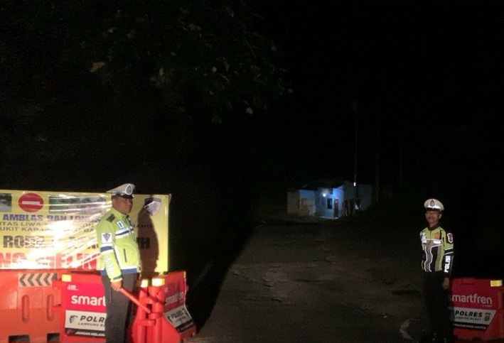 tribratanews.lampung.polri.go.id Lampung Barat, Senin 21 Juli 2025 – Menyikapi kondisi jalan amblas di KM 22 Kubu Perahu, Sat Lantas Polres Lampung Barat melaksanakan penyekatan terhadap kendaraan roda enam atau lebih yang melintas di jalur Liwa–Krui. Minggu Malam 20/07/25Kapolres Lampung Barat AKBP Rinaldo Aser, S.H., S.I.K., M.Si. melalui Kasat Lantas IPTU Deni Saputra, S.H., M.M. menjelaskan bahwa langkah ini diambil guna mencegah potensi bahaya serta menjaga keamanan dan keselamatan lalu lintas (Kamseltibcarlantas) di lokasi terdampak. "Kami melakukan penyekatan terhadap kendaraan bertonase besar untuk menghindari resiko lebih parah di titik jalan yang mengalami kerusakan," ujar IPTU Deni. Pihak kepolisian juga mengimbau kepada para pengemudi kendaraan berat untuk mengikuti arahan petugas di lapangan dan mencari jalur alternatif sampai kondisi jalan benar-benar aman dilalui.