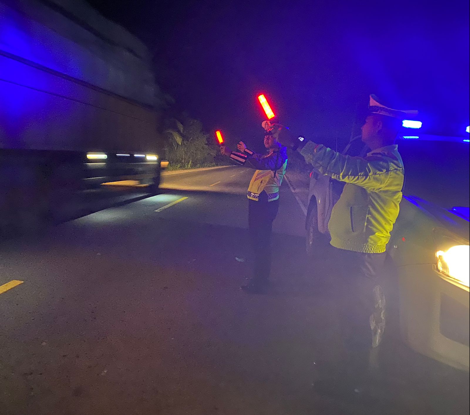 tribratanews.lampung.polri.go.id Personel Sat Lantas Polres Mesuji melaksanakan patroli dan pengaturan lalu lintas di Jalintim KM 187 pada Selasa malam. Kegiatan ini bertujuan untuk mencegah kejahatan pencurian, kekerasan, dan perampokan (C3) serta mengurangi risiko kecelakaan lalu lintas di daerah tersebut.29/10Dalam patroli ini, petugas melakukan pengecekan terhadap kendaraan yang melintas dan memberikan imbauan kepada pengendara untuk mematuhi peraturan lalu lintas. Selain itu, anggota juga berusaha menciptakan suasana aman di sekitar jalur yang padat, mengingat kawasan tersebut merupakan titik vital bagi transportasi. Kasat Lantas Polres Mesuji, AKP Asep Suhendi,S.H.,M.H, menjelaskan bahwa kegiatan ini merupakan langkah preventif untuk menjaga keselamatan pengguna jalan. "Kami ingin memastikan bahwa arus lalu lintas tetap lancar dan aman, serta mencegah terjadinya tindak kriminal," ujarnya. Masyarakat mengapresiasi kehadiran petugas yang aktif di lapangan. Dengan adanya patroli dan pengaturan ini, diharapkan angka kecelakaan dan kejahatan di Jalintim KM 187 dapat berkurang, mendukung keamanan dan ketertiban selama masa pemilihan umum yang akan datang.