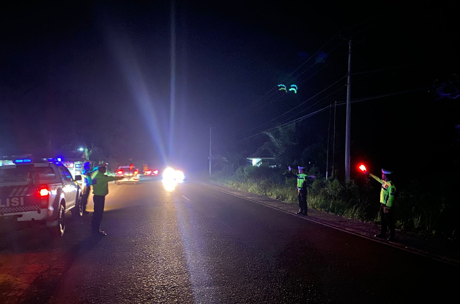 Sat Lantas Polres Mesuji Patroli Malam Di Jalan Lintas Timur KM 196