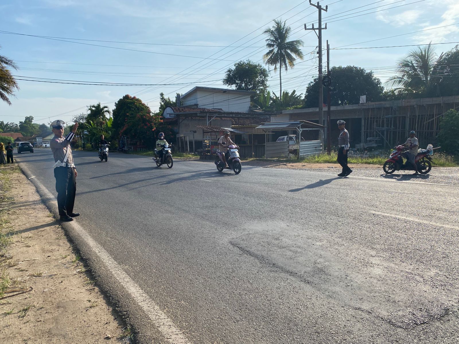 Sat Lantas Polres Tulang Bawang Barat Pam Rawan Pagi di Simpang Samsat Candra Mukti