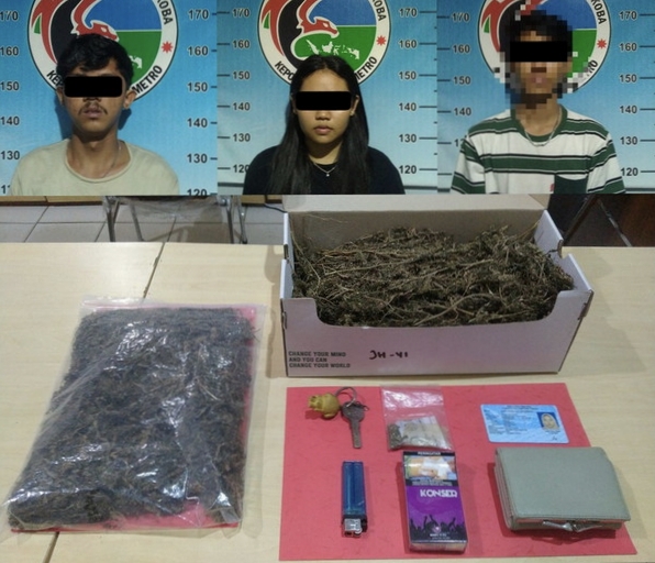 tribratanews.lampung.polri.go.id. METRO LAMPUNG - Polres Metro berhasil mengamankan tiga tersangka dalam kasus dugaan penyalahgunaan narkotika jenis ganja pada Selasa, 22 Oktober 2024. Penangkapan ini berdasarkan Laporan Polisi Nomor: LP/A/92/X/2024/SPKT.SATRESNARKOBA/POLRES METRO/POLDA LAMPUNG.Dalam operasi yang digelar sekitar pukul 16.30 WIB, di sebuah kamar kos yang terletak di Kelurahan Hadimulyo Barat, Kecamatan Metro Pusat, polisi menemukan barang bukti berupa daun, biji, dan batang kering yang diduga merupakan narkotika jenis ganja. Barang-barang tersebut ditemukan dalam koper di kamar kos tersebut. Kapolres Metro AKBP Heri Sulistyo Nugroho, S.I.K., M.I.K. melalui Kasat Narkoba AKP Henur Muhammad, S.H., M.H mengatakan bahwa setelah penyelidikan lebih lanjut, tim Satres Narkoba melakukan pengembangan dan kembali menemukan satu kotak kardus berisi narkotika. “ bahwa setelah penyelidikan lebih lanjut, tim Satres Narkoba melakukan pengembangan dan kembali menemukan satu kotak kardus berisi narkotika serupa di sebuah rumah kosong di Kelurahan Yosomulyo, Kecamatan Metro Pusat. Barang bukti yang diamankan di lokasi tersebut mencakup total sekitar 750 gram ganja dalam kantong plastik dan 1,4 gram daun kering yang disimpan dalam plastik klip,” ucapnya Ketiga tersangka yang diamankan di lokasi berbeda yakni NFH (21), RDV (16), dan MS (20). NFH dan RDV merupakan warga Jalan Semangka, Metro Pusat, sedangkan MS diketahui berasal dari Lampung Timur. Ketiganya kini ditahan di Polres Metro dan dijerat dengan Pasal 111 Ayat (1) junto Pasal 132 Ayat (1) UU RI No. 35 Tahun 2009 tentang Narkotika. Kapolres Metro menyatakan bahwa pihaknya masih terus melakukan pengembangan atas kasus ini dan tidak menutup kemungkinan ada tersangka lain yang terlibat. Para tersangka terancam hukuman penjara maksimal 12 tahun atas pelanggaran Undang-Undang Narkotika tersebut.
