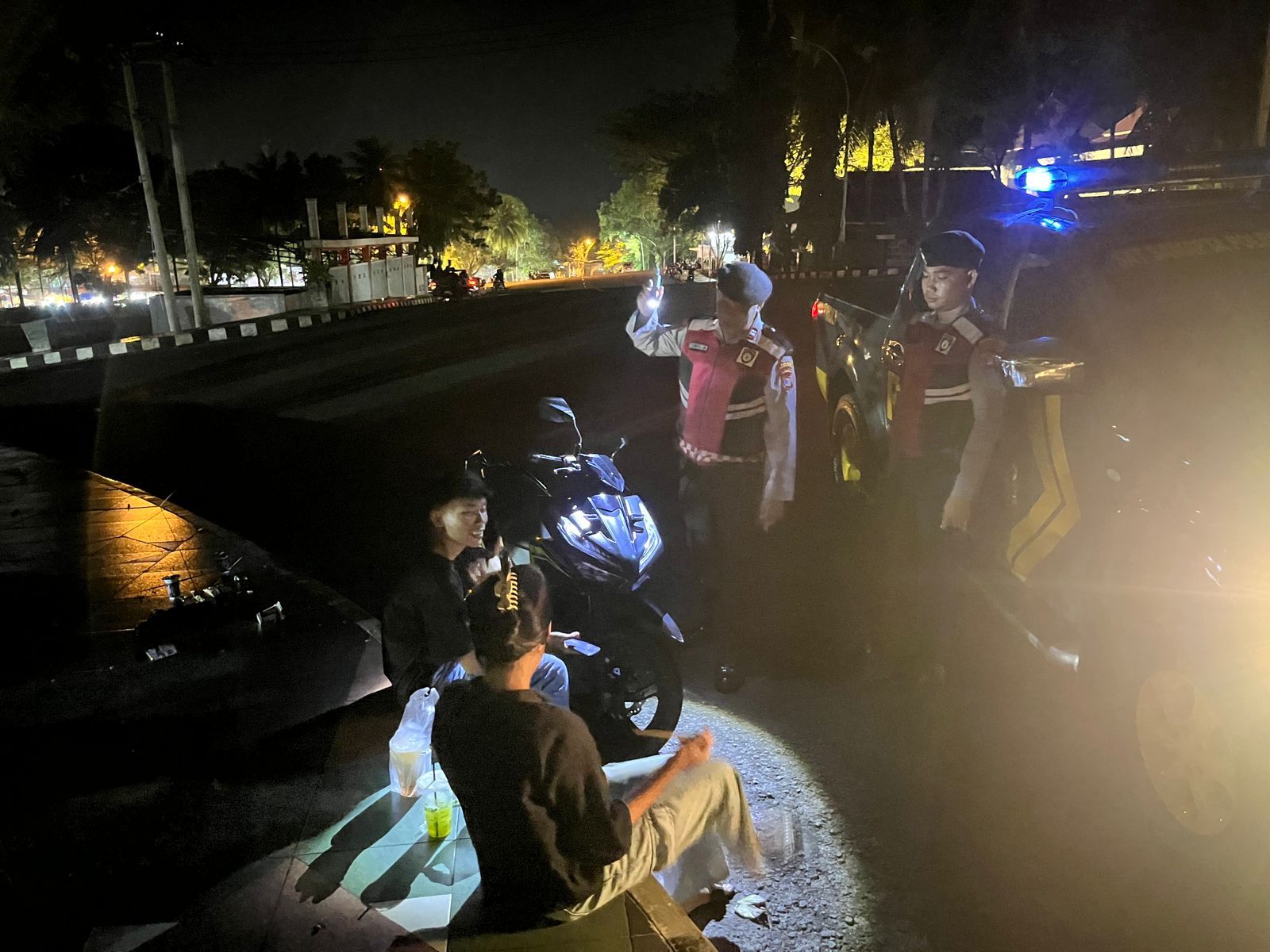 tribratanews.lampung.polri.go.id Lampung Selatan, Sabtu 24 Januari 2026 — Personel Satuan Samapta Polres Lampung Selatan kembali mengintensifkan Patroli Kota Presisi dan preventif pada Jumat malam (23/1/2026) guna mencegah tindak kriminalitas serta potensi konflik sosial di wilayah Kalianda dan sekitarnya.Patroli yang berlangsung sejak pukul 20.30 WIB hingga 22.56 WIB tersebut menyasar sejumlah titik rawan, mulai dari kawasan Perkantoran Pemerintah Daerah Kabupaten Lampung Selatan, mesin ATM di Rumah Sakit Bob Bazar Kalianda, hingga Jalan Lintas Sumatera Simpang GOR Way Handak dan Jalan Cinta Kalianda. Kegiatan patroli dilaksanakan oleh Aiptu Tony Afriansyah, Aiptu Andi Wijaya, Bripda Ananda Syanibar, dan Bripda Mario Yusuf A. Selain melakukan pemantauan situasi keamanan, personel juga aktif menyampaikan imbauan kamtibmas kepada masyarakat. Di kawasan perkantoran Pemda, petugas menyisir area sekitar untuk mengantisipasi tindak pidana pencurian dengan kekerasan, pencurian dengan pemberatan, serta pencurian kendaraan bermotor (C3). Sejumlah remaja yang terlihat duduk santai juga diberikan imbauan secara humanis agar tidak beraktivitas hingga larut malam demi menghindari hal-hal yang tidak diinginkan. Patroli kemudian dilanjutkan ke RS Bob Bazar Kalianda dengan melakukan kontrol mesin ATM. Langkah ini dilakukan untuk mencegah aksi kejahatan seperti pengganjalan mesin ATM maupun tindak kriminal lainnya yang berpotensi terjadi di area rumah sakit. Sementara itu, di Jalan Lintas Sumatera Simpang GOR Way Handak dan Jalan Cinta Kalianda, personel fokus mengantisipasi balap liar, kejahatan jalanan, serta gangguan kamtibmas lainnya yang kerap muncul pada malam hari. Aiptu Tony Afriansyah mengatakan bahwa patroli malam merupakan upaya preventif Polri untuk memberikan rasa aman kepada masyarakat.