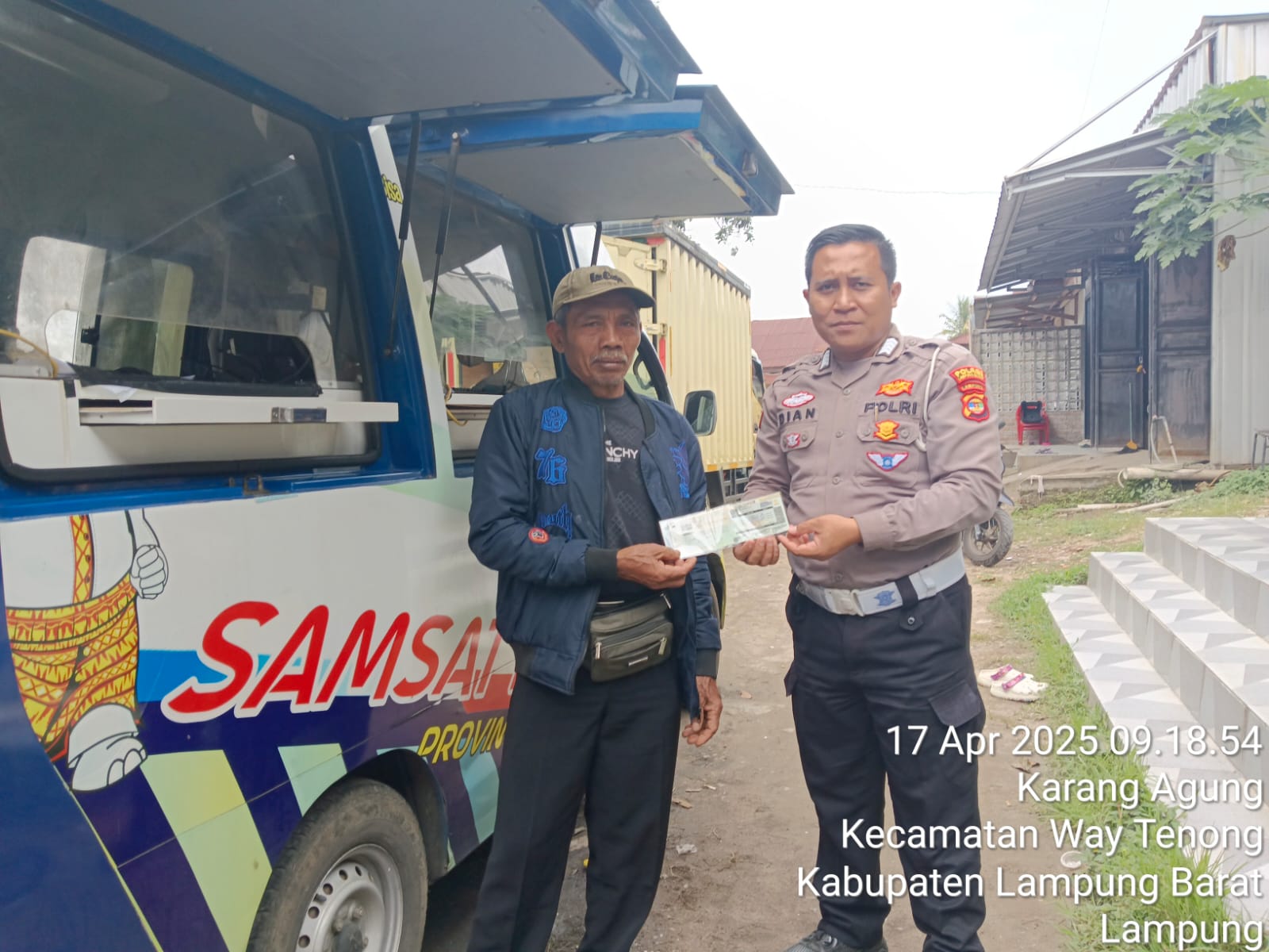 Tribratanews Lampung polri go id. Lampung Barat, Jumat 18 April 2025 – Dalam rangka meningkatkan kualitas pelayanan publik dan mendekatkan layanan kepolisian kepada masyarakat, Unit Regident Satlantas Polres Lampung Barat kembali menggelar kegiatan Pelayanan Samsat Keliling di wilayah Kecamatan Way Tenong. Kegiatan ini dilaksanakan pada Kamis, 17 April 2025, mulai pukul 08.00 WIB hingga selesai, bertempat di Pasar Senin Kelurahan Fajar Bulan, Kecamatan Way Tenong, Kabupaten Lampung Barat.Kegiatan ini dilaksanakan Kasatlantas polres Lampung Barat Iptu Deni Saputra, S.H., M.M. Melalui Personel Unit Regident, yaitu BRIPKA Dian Setiyawan dan BRIGPOL Chandra Andika, dengan metode pelayanan yang dilakukan secara bersinergi bersama petugas Bapenda dan Jasa Raharja, yaitu memberikan pelayanan administrasi pengesahan STNK serta mengimbau masyarakat agar taat terhadap administrasi kendaraan bermotor. Pelayanan Samsat Keliling ini bertujuan untuk mempermudah, mempercepat, serta menciptakan kenyamanan bagi masyarakat dalam mengurus administrasi kendaraan bermotor, tanpa harus datang ke kantor Samsat. Di samping itu, kegiatan ini juga bertujuan untuk meningkatkan kesadaran masyarakat dalam tertib administrasi kendaraan, sebagai bentuk kepatuhan hukum dan kontribusi terhadap pembangunan daerah melalui pajak. BRIPKA Dian Setiyawan menyampaikan bahwa kehadiran layanan langsung di tengah aktivitas masyarakat seperti di pasar memberikan akses yang lebih mudah bagi warga, khususnya yang tinggal di wilayah jauh dari pusat kota. “Kami berharap masyarakat semakin disiplin dalam membayar pajak dan mengesahkan STNK tepat waktu,” ujarnya. Kegiatan berlangsung dengan tertib, aman, dan mendapat antusiasme positif dari masyarakat sekitar. Pelayanan Samsat Keliling ini merupakan wujud nyata dari komitmen Polres Lampung Barat dalam memberikan pelayanan prima serta mendukung program Polri yang Presisi.