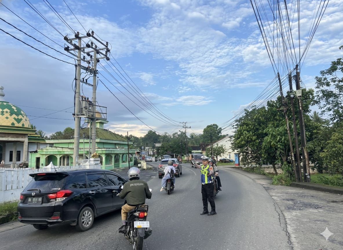 Satlantas Polres Pesawaran Hadir di Jam Sibuk, Atur Arus Lalu Lintas Pagi di Simpang Kogop Gedong Tataan