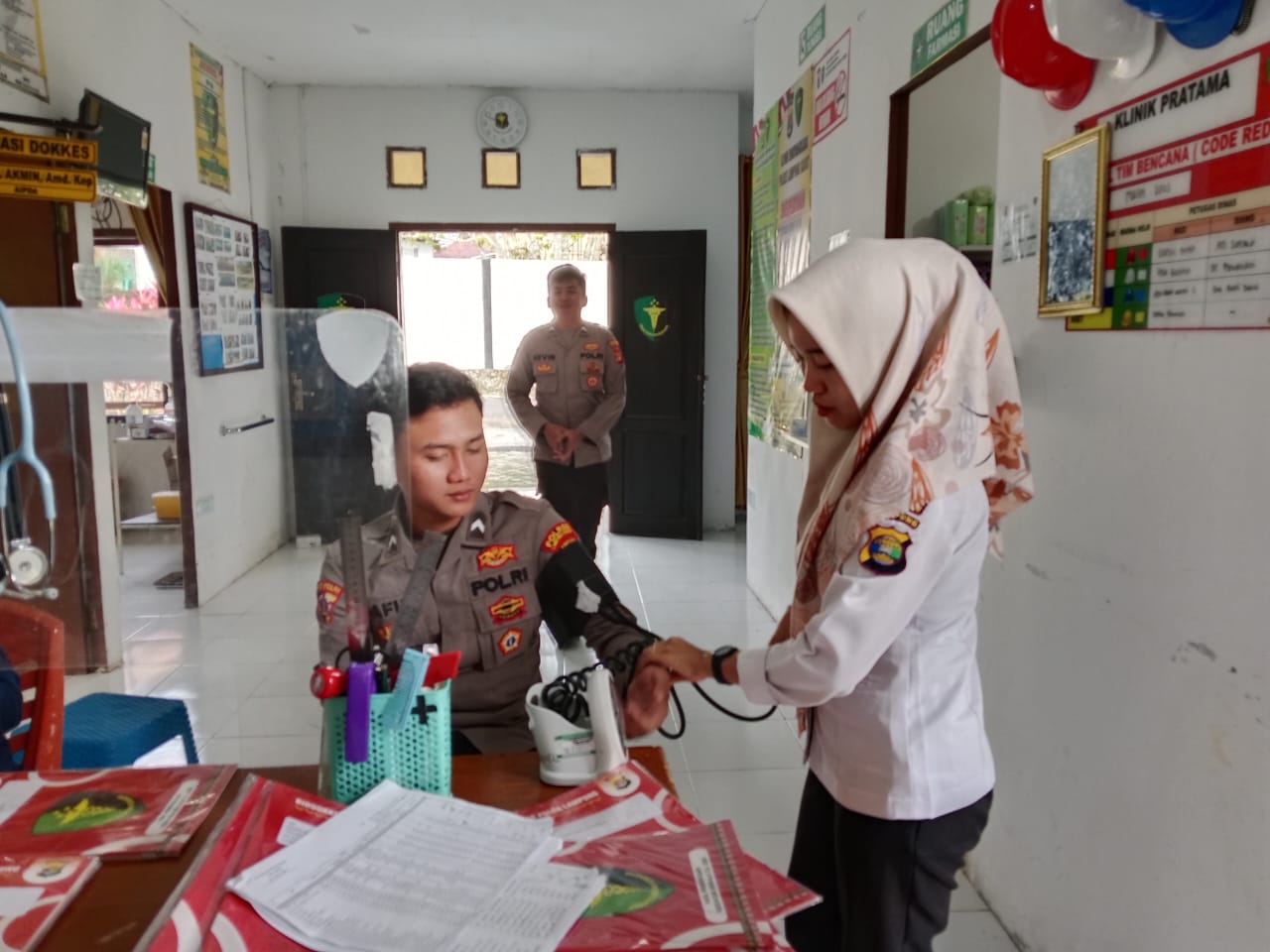 Tribratanews Lampung polri go id. Lampung Barat, Jumat 25 April 2025–Dalam rangka meningkatkan kualitas kesehatan personel dan mendekatkan pelayanan kepada masyarakat, Seksi Kedokteran dan Kesehatan (Sie Dokes) Polres Lampung Barat terus aktif memberikan layanan pengobatan, baik bagi anggota Polri maupun masyarakat umum.Kapolres Lampung Barat, AKBP Rinaldo Aser, SH, SIK, MSi melalui Kasie Dokes Polres Lampung Barat, Aipda Nursal Akmin, Amd.Kep menyampaikan bahwa kegiatan ini merupakan bagian dari komitmen Polri untuk memberikan pelayanan terbaik dalam bidang kesehatan. “Kami tidak hanya fokus pada kesehatan internal anggota, tapi juga membuka ruang bagi masyarakat umum yang membutuhkan pemeriksaan atau pengobatan dasar,” ujar Aipda Nursal. Pelayanan yang diberikan meliputi pemeriksaan tekanan darah, konsultasi kesehatan, pemberian obat ringan, hingga edukasi tentang gaya hidup sehat. Kegiatan ini dilaksanakan rutin di lingkungan Mapolres maupun di lokasi-lokasi tertentu saat kegiatan sambang atau bakti sosial. Menurut Aipda Nursal, kehadiran Sie Dokes di tengah masyarakat juga menjadi sarana mempererat hubungan antara Polri dan warga. “Kami ingin masyarakat tahu bahwa polisi juga hadir sebagai pelayan di bidang kesehatan, bukan hanya penegak hukum,” tambahnya. Langkah ini diharapkan dapat meningkatkan kesadaran kesehatan di kalangan masyarakat, serta membentuk citra positif Polri sebagai institusi yang humanis dan peduli.