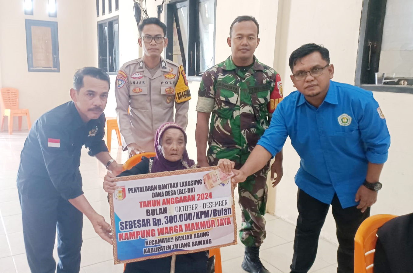 Kegiatan penyaluran BLT DD yang dihadiri oleh tiga Bhabinkamtibmas ini berlangsung hari Kamis (05/12/2024), pukul 09.00 WIB s/d selesai, di Kecamatan Banjar Agung, Kabupaten Tulang Bawang.