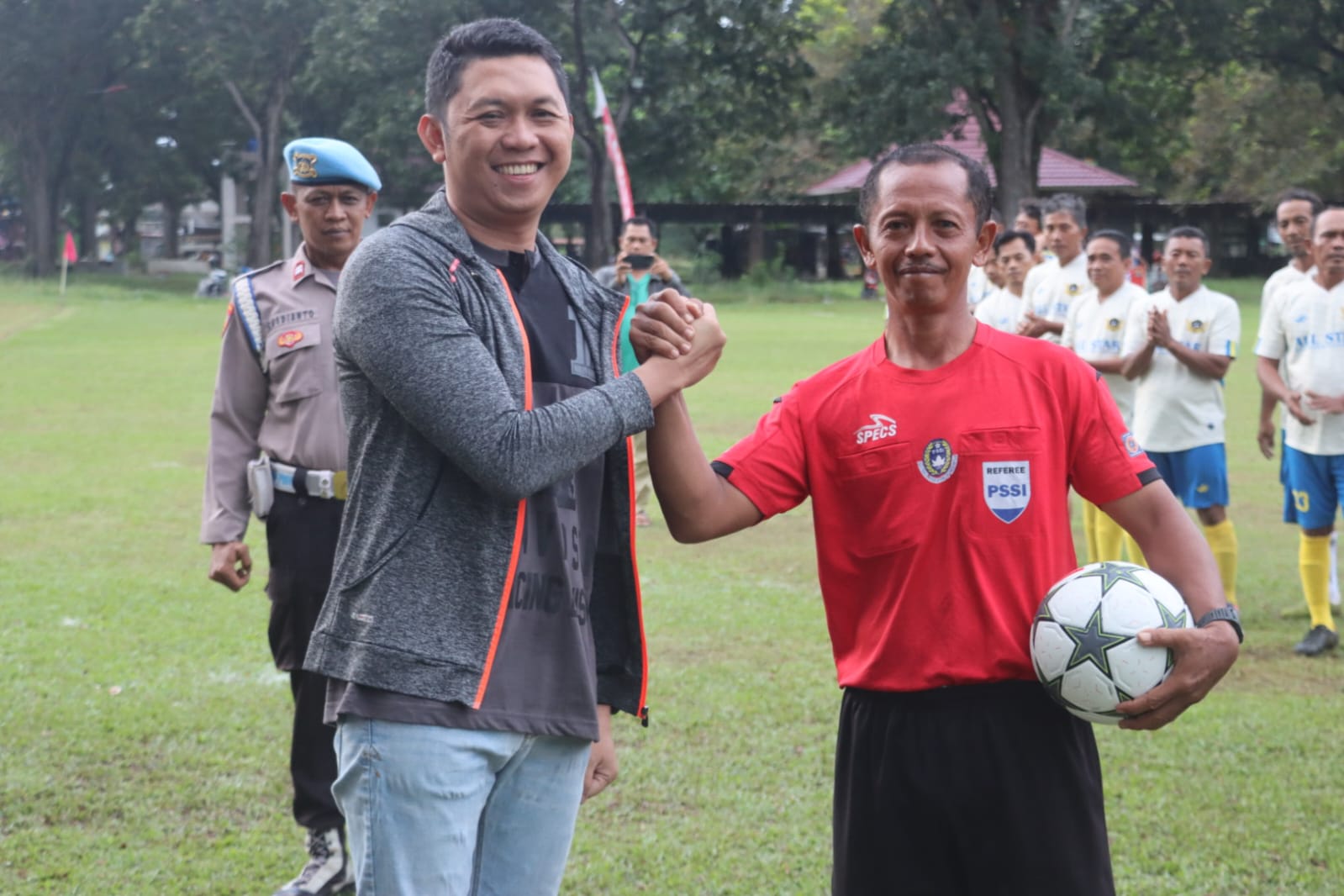 tribratanews.lampung.polri.go.id. Lampung Tengah, Senin 16 Juni 2025 – Dalam rangka menyambut Hari Bhayangkara ke-79, Kapolres Lampung Tengah, Polda Lampung, AKBP Alsyahendra, S.I.K., M.H., didampingi PS. Wakapolres Kompol Edi Qorinas, Kajari Tomy Adhyaksa Putra, Ketua DPRD Lampung Tengah, Febriyantoni, serta Danramil Terbanggi Besar yang diwakili oleh Bhabinsa Sertu Sinaga, secara resmi membuka Turnamen Sepak Bola Kapolres Cup U-50 pada Minggu sore (15/6/25).Acara pembukaan tersebut berlangsung meriah di Lapangan Prosida Bandar Jaya dan disambut antusias oleh masyarakat, pencinta olahraga, serta para pemain veteran yang turut andil dalam kompetisi ini.