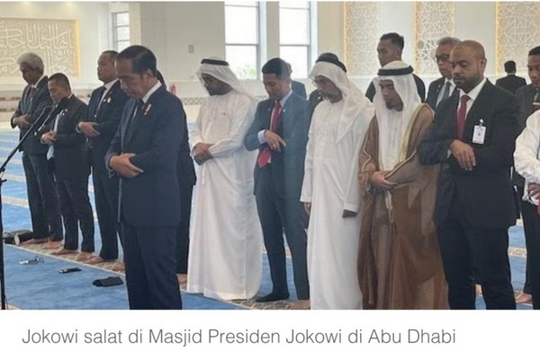 Usai Bertemu MBZ, Jokowi Perdana Salat di Masjid Presiden Jokowi di Abu Dhabi