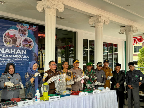 tribratanews.lampung.polri.go.id. Pringsewu - Wakapolres Pringsewu, Kompol Robi Bowo Wicaksono, S.H, menghadiri acara pemusnahan barang bukti di Kantor Kejaksaan Negeri Pringsewu pada hari Selasa, (03/12/2024). Acara ini melibatkan berbagai elemen, termasuk pihak kepolisian, kejaksaan, dan instansi terkait lainnya.Pemusnahan barang bukti ini adalah langkah konkret dalam upaya penegakan hukum di Pringsewu. Berbagai jenis barang bukti, mulai dari narkotika hingga senjata tajam, dimusnahkan setelah melalui proses hukum yang telah selesai. Kompol Robi Bowo Wicaksono, S.H, menyampaikan apresiasinya terhadap kerja sama yang solid antara kepolisian dan kejaksaan. "Ini adalah bukti nyata dari sinergi antara kepolisian dan kejaksaan dalam menjaga keamanan di Pringsewu. Pemusnahan ini juga memberikan rasa aman kepada masyarakat," ujar beliau. Kepala Kejaksaan Negeri Pringsewu, Raden Bagus Wisnu Wicaksono, menegaskan pentingnya transparansi dalam penanganan barang bukti. "Kami berkomitmen untuk terus bekerja sama dengan semua pihak dalam memberantas kejahatan. Pemusnahan ini adalah salah satu bentuk nyata dari akuntabilitas kami," kata Raden Bagus. Melalui kegiatan ini, diharapkan dapat memberikan efek jera kepada pelaku kejahatan dan menjadi simbol keberhasilan penegakan hukum di wilayah Pringsewu. Masyarakat juga diimbau untuk terus mendukung upaya penegakan hukum dengan bekerja sama dan memberikan informasi kepada pihak berwajib. Kegiatan pemusnahan barang bukti ini diharapkan dapat menciptakan lingkungan yang lebih aman dan damai di Pringsewu, bebas dari ancaman kriminalitas.