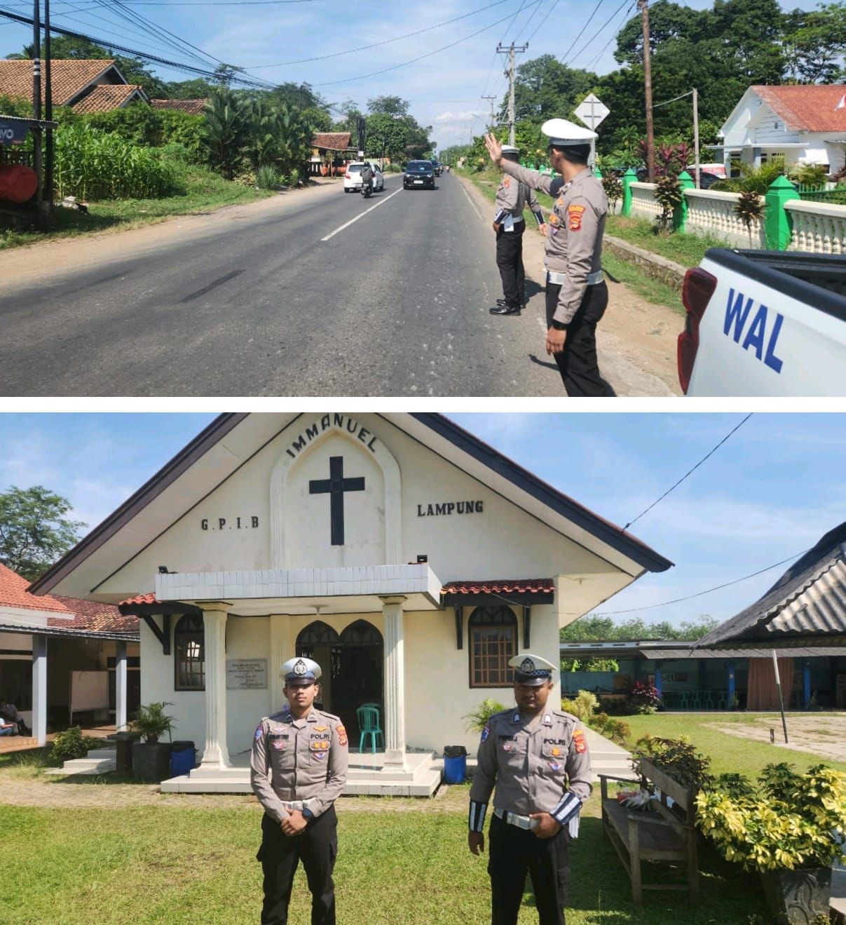tribratanews.lampung.polri.go.id. Pesawaran, Minggu 12 Oktober 2025 Polres Pesawaran , Polda Lampung – Dalam rangka memberikan rasa aman dan nyaman bagi masyarakat yang melaksanakan ibadah, Satuan Lalu Lintas (Sat Lantas) Polres Pesawaran melaksanakan kegiatan pengamanan dan pengaturan arus lalu lintas di wilayah Kecamatan Gedong Tataan, Kabupaten Pesawaran, Minggu (12/10/2025).Kegiatan yang berlangsung sejak pukul 09.00 WIB ini dilaksanakan oleh personel Brigpol Puput dan Bripda Daffa di Gereja GPIB Immanuel Lampung, serta di sejumlah titik rawan kemacetan di jalur lintas barat (Jalinbar) wilayah hukum Polres Pesawaran.