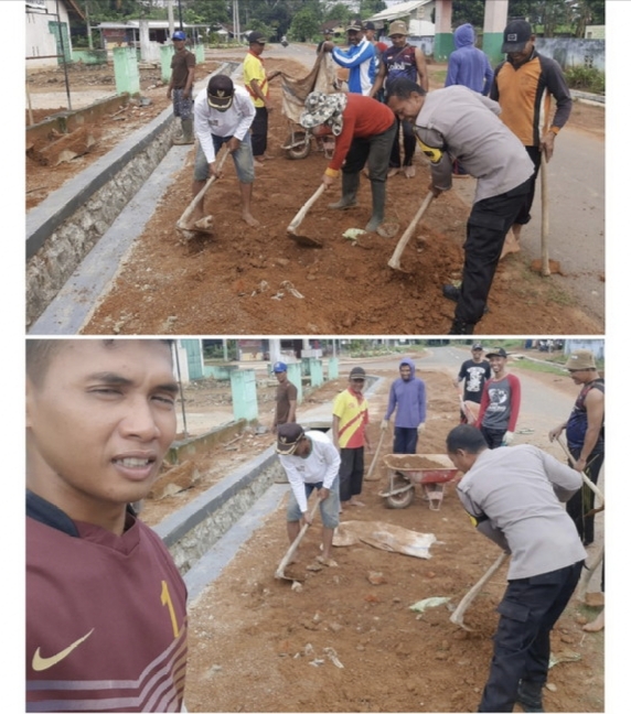 Wujud Polisi Penolong Masyarakat, Polsek Raman Utara Ikut Gotong Royong
