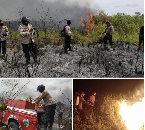Polres Lampung Timur Polda Lampung, telah mengerahkan 42 personil untuk membantu pemadaman api selama dua hari di lokasi tersebut dengan peralatan seadanya.