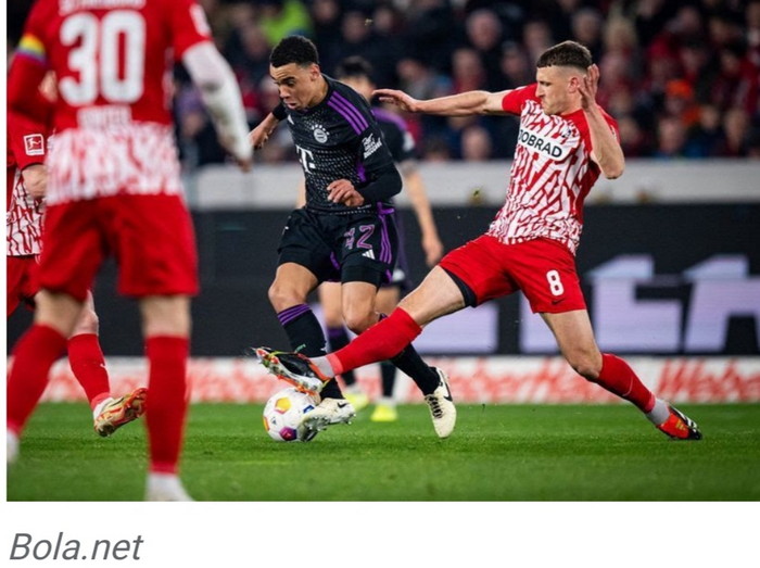 https://tribratanews.lampung.polri.go.id. - Jakarta. Bayern Munchen dipaksa puas dengan hasil imbang 2-2 oleh tuan rumah Freiburg dalam duel pekan ke-24 Bundesliga 2023/2024 di Stadion Europa-Park, Sabtu (2/3/24).Laga kontra tim medioker seharusnya mudah bagi Bayern, tapi faktanya tidak demikian. Freiburg unggul lebih dahulu lewat aksi Christian Gunter (12'), Bayern lantas berbalik unggul melalui Mathys Tel (35') dan Jamal Musiala (75'). Nahas, di akhir laga, Bayern lengah dan membiarkan Freiburg menyamakan kedudukan dengan gol Lucas Holer (87'). Sisa waktu tidak cukup bagi Bayern untuk kembali mencetak gol. Hasil imbang ini tidak cukup bagus bagi Bayern yang harus bersaing ketat di papan atas. Mereka masih ada di peringkat dua klasemen Liga Jerman 2023/2024, tapi selisih poin dari Bayer Leverkusen bisa melebar Sumber :