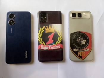 Polisi turut mengamankan sejumlah barang bukti berupa: Uang tunai hasil pemerasan, Beberapa unit handphone yang digunakan untuk melancarkan aksi, Tiga unit sepeda motor tanpa nomor polisi