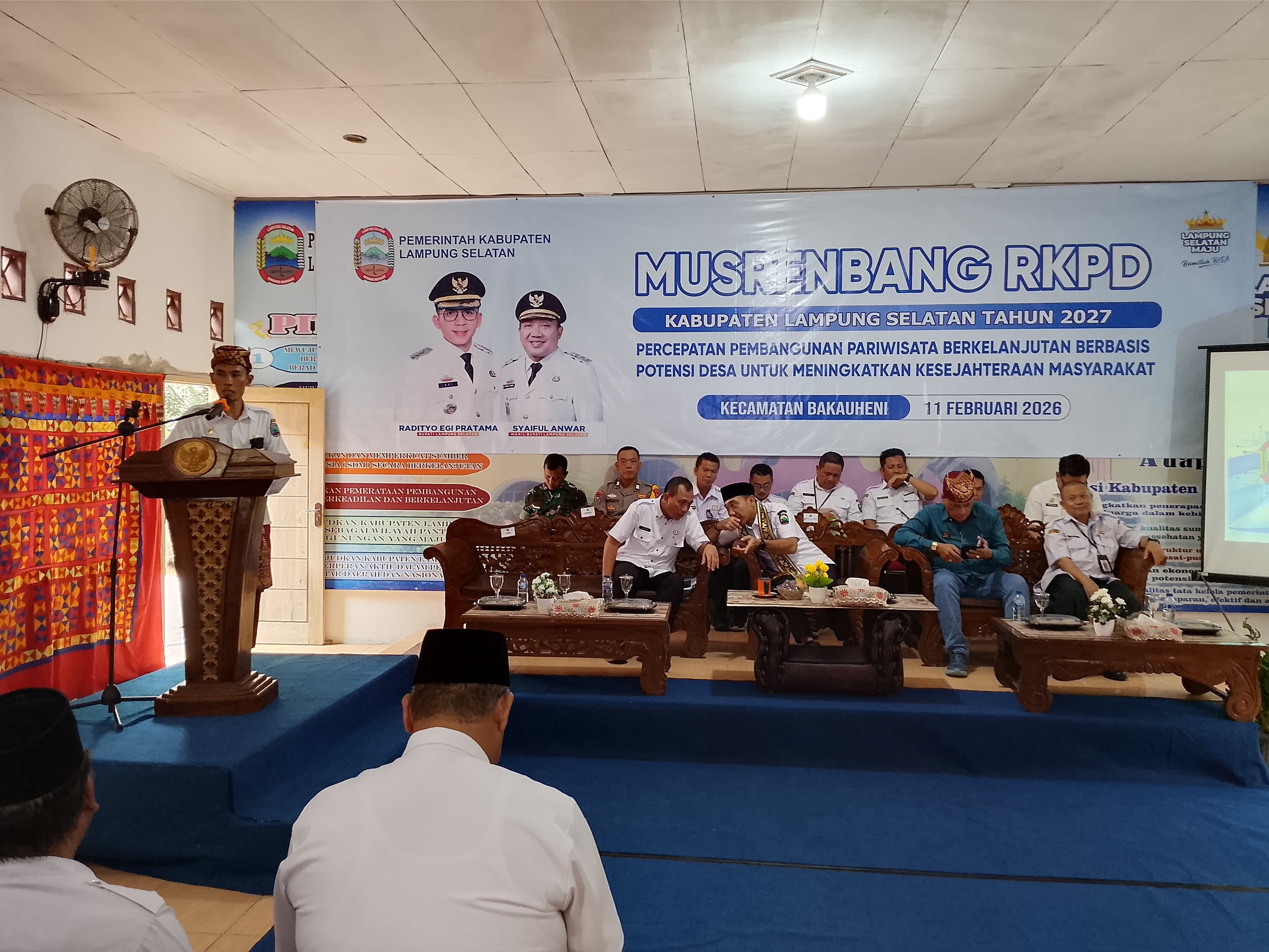 tribratanews.lampung.polri.go.id. Lampung Selatan, Kamis 12 Pebruari 2026 – Kegiatan Musyawarah Rencana Pembangunan (Musrenbang) Kecamatan Bakauheni, Kabupaten Lampung Selatan, berlangsung tertib, aman, dan lancar pada Kamis (12/2/2026). Kegiatan yang digelar di Kantor Kecamatan Bakauheni tersebut dihadiri unsur pemerintah daerah, Forkopimda, serta tokoh masyarakat setempat sebagai bagian dari proses penyusunan rencana pembangunan wilayah.