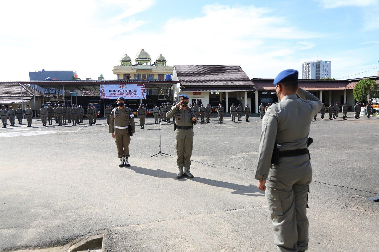 Senin 12 Juli 2021 Satbrimob Polda Lampung Komandan Satuan Brimob Polda Lampung KBP Wahyu Widiarso Suprapto, S.IK., M.Si memimpin langsung upacara pembukaan Latihan Peningkatan Kemampuan Kimia Biologi dan Radioaktif personel Satbrimob Polda Lampung Di lapangan Hitam Mako Sat Brimob.