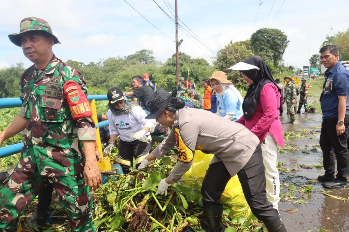 Dukung Gerakan Indonesia Asri, Kapolres Lampung Timur Bersama Forkopimda Gotong Royong Bersihkan Jembatan Way Curup