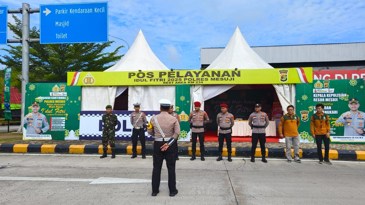 tribratanews.lampung.polri.go.id. Mesuji, Senin 24 Maret 2025 Dalam rangka memastikan kesiapsiagaan dan kelancaran pengamanan arus mudik Lebaran, Piket Pos Pelayanan Rest Area 234 Jalan Tol Trans Sumatera (JTTS) yang tergabung dalam Operasi Ketupat Krakatau 2025 melaksanakan apel pagi dan apel malam secara rutin.Kegiatan apel ini bertujuan untuk melakukan pengecekan jumlah personel yang bertugas serta menyampaikan dan menerima arahan dari pimpinan terkait tugas dan tanggung jawab pengamanan di pos pelayanan. Apel pagi digelar sebelum memulai tugas, sementara apel malam dilakukan sebagai evaluasi dan koordinasi setelah pelaksanaan tugas sehari penuh. Dalam apel pagi, pimpinan pos pelayanan menekankan pentingnya kesiapan personel dalam memberikan pelayanan kepada pemudik, baik dalam hal keamanan, kelancaran arus lalu lintas, maupun bantuan informasi bagi para pengguna jalan tol. Sementara dalam apel malam, dilakukan evaluasi terkait dinamika di lapangan serta kendala yang dihadapi guna perbaikan tugas ke depannya. “Kami memastikan seluruh personel dalam kondisi siap siaga dan memahami tugasnya masing-masing. Pengamanan di Rest Area 234 ini sangat penting karena menjadi salah satu titik istirahat utama bagi pemudik yang melintas di JTTS,” ujar pimpinan apel. Dengan adanya kegiatan apel rutin ini, diharapkan koordinasi dan efektivitas tugas personel dalam menjaga keamanan dan kenyamanan pemudik semakin optimal, sehingga arus mudik Lebaran 2025 dapat berjalan dengan aman dan lancar.