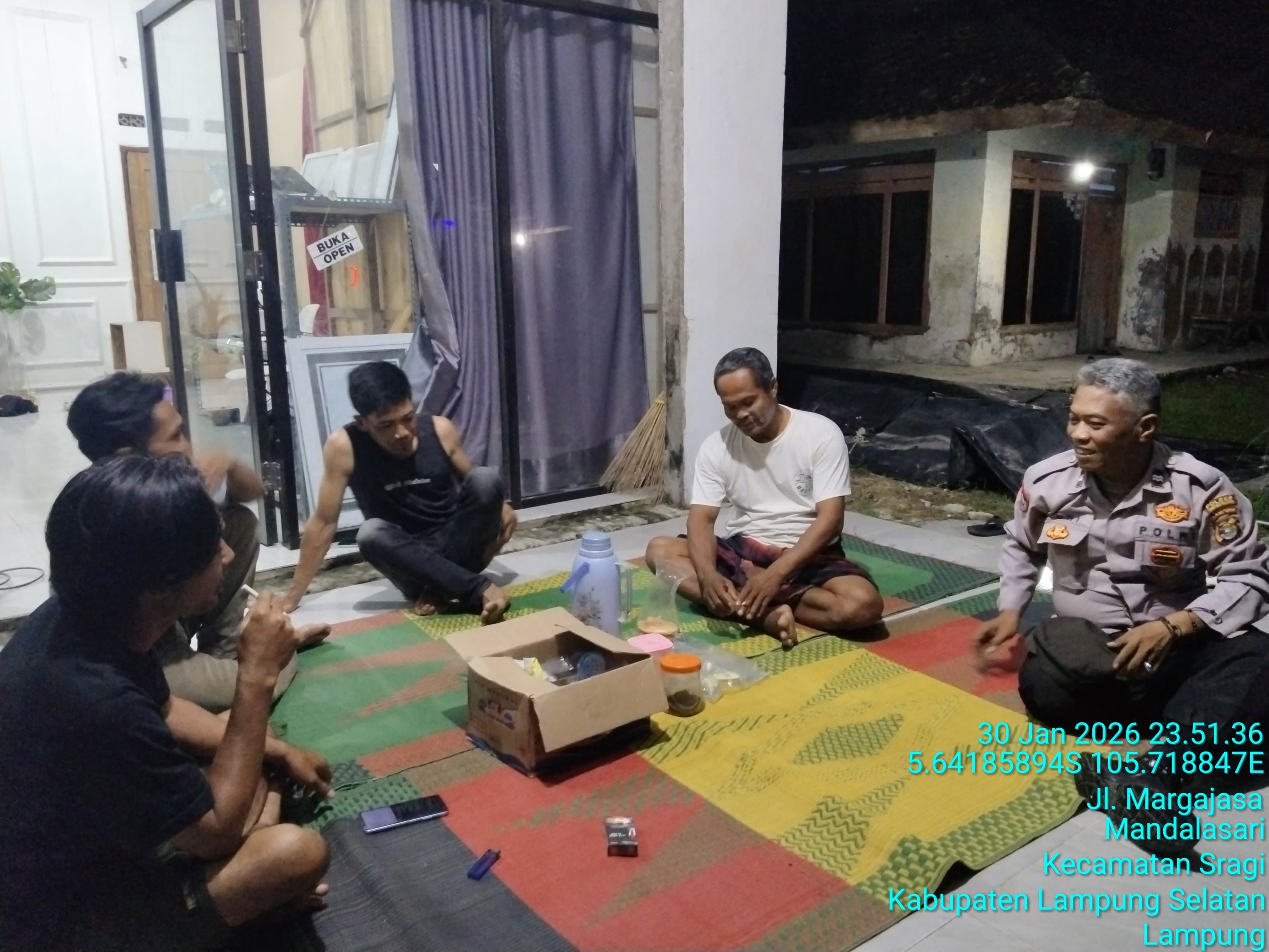 tribratanews.lampung.polri.go.id Lampung Selatan, Minggu 01 Pebruari 2026, – Kanit Binmas Polsek Sragi, Polres Lampung Selatan, melaksanakan kegiatan sambang dialogis bersama warga di Balai Desa Mandalasari, Kecamatan Sragi, Kabupaten Lampung Selatan, Sabtu (31/1/2026) malam.Kegiatan yang berlangsung sekitar pukul 23.10 WIB tersebut bertujuan untuk mempererat hubungan silaturahmi antara Polri dan masyarakat sekaligus menyampaikan pesan-pesan keamanan dan ketertiban masyarakat (kamtibmas) di wilayah hukum Polsek Sragi. Dalam kegiatan tersebut, AIPTU Dwi Ariyanta selaku Kanit Binmas hadir secara humanis dan berdialog langsung dengan warga. Ia menyampaikan imbauan agar masyarakat senantiasa menjaga keamanan lingkungan secara bersama-sama serta meningkatkan kepedulian terhadap situasi di sekitar tempat tinggal. Selain imbauan kamtibmas, AIPTU Dwi Ariyanta juga mengingatkan warga untuk meningkatkan kewaspadaan terhadap potensi bencana alam, mengingat kondisi cuaca yang tidak menentu. Warga diminta untuk segera melaporkan kepada aparat desa maupun pihak kepolisian apabila terjadi kejadian darurat atau potensi bencana di lingkungan sekitar.