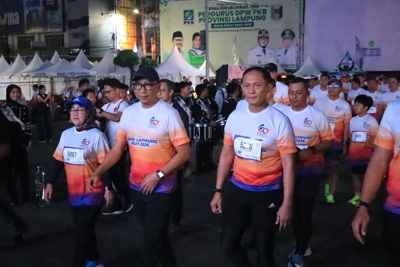 tribratanews.lampung.polri.go.id. LAMPUNG – Kapolda Lampung Irjen Pol Helfi Assegaf mengikut dan menghadiri undangan event Bank Lampung Run 2026 dalam rangka memperingati Hari Ulang Tahun ke-60 Bank Lampung. Kegiatan yang berlangsung di Tugu Adipura Bandar Lampung, Minggu (8/2/26).Event Bank Lampung Run ini diikuti ribuan masyarakat dan dihadiri pula oleh Gubernur Lampung beserta seluruh unsur Forkopimda Provinsi Lampung. Acara yang menarik sekitar 5.000 peserta ini menyajikan tiga kategori lari, yaitu 3K, 5K, dan 10K, yang diikuti oleh berbagai kalangan dari seluruh penjuru Lampung. Kegiatan diakhiri dengan pemberian medali kepada para peserta yang berhasil menyelesaikan tantangan. Dalam kesempatan tersebut, Kabid Humas Polda Lampung Kombes Pol Yuni Iswandari menyampaikan apresiasi dan dukungan penuh, “Kami menyampaikan apresiasi setinggi-tingginya kepada Bank Lampung yang telah menyelenggarakan event positif dan inspiratif ini. Bank Lampung Run 2026 tidak hanya menjadi wadah perayaan ulang tahun ke-60, tetapi juga mendorong gaya hidup sehat dan kebersamaan seluruh masyarakat Lampung.” Kabid Humas juga menekankan pentingnya sinergi antara institusi dan masyarakat dalam membangun budaya positif: “Kegiatan seperti ini sejalan dengan komitmen Polri untuk selalu dekat dan hadir di tengah masyarakat. Kami mendukung penuh inisiatif-inisiatif yang membangun semangat kebersamaan, kesehatan, dan sportivitas. Keikutsertaan ribuan peserta hari ini membuktikan bahwa masyarakat Lampung sangat antusias terhadap kegiatan yang positif dan menyehatkan.” Ucapnya Event Bank Lampung Run 2026 berlangsung dengan lancar dan meriah, menunjukkan kolaborasi yang solid antara dunia perbankan, pemerintah daerah, dan aparat keamanan dalam menyelenggarakan kegiatan yang bermanfaat bagi masyarakat luas.