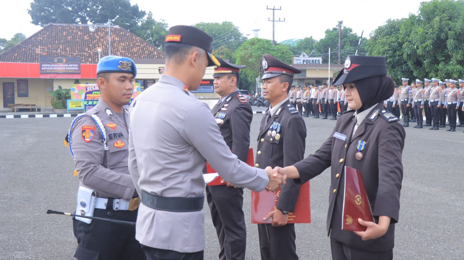 Kapolres Metro Polda Lampung Pimpin Upacara Penganugerahan Tanda Kehormatan Pengabdian Personel