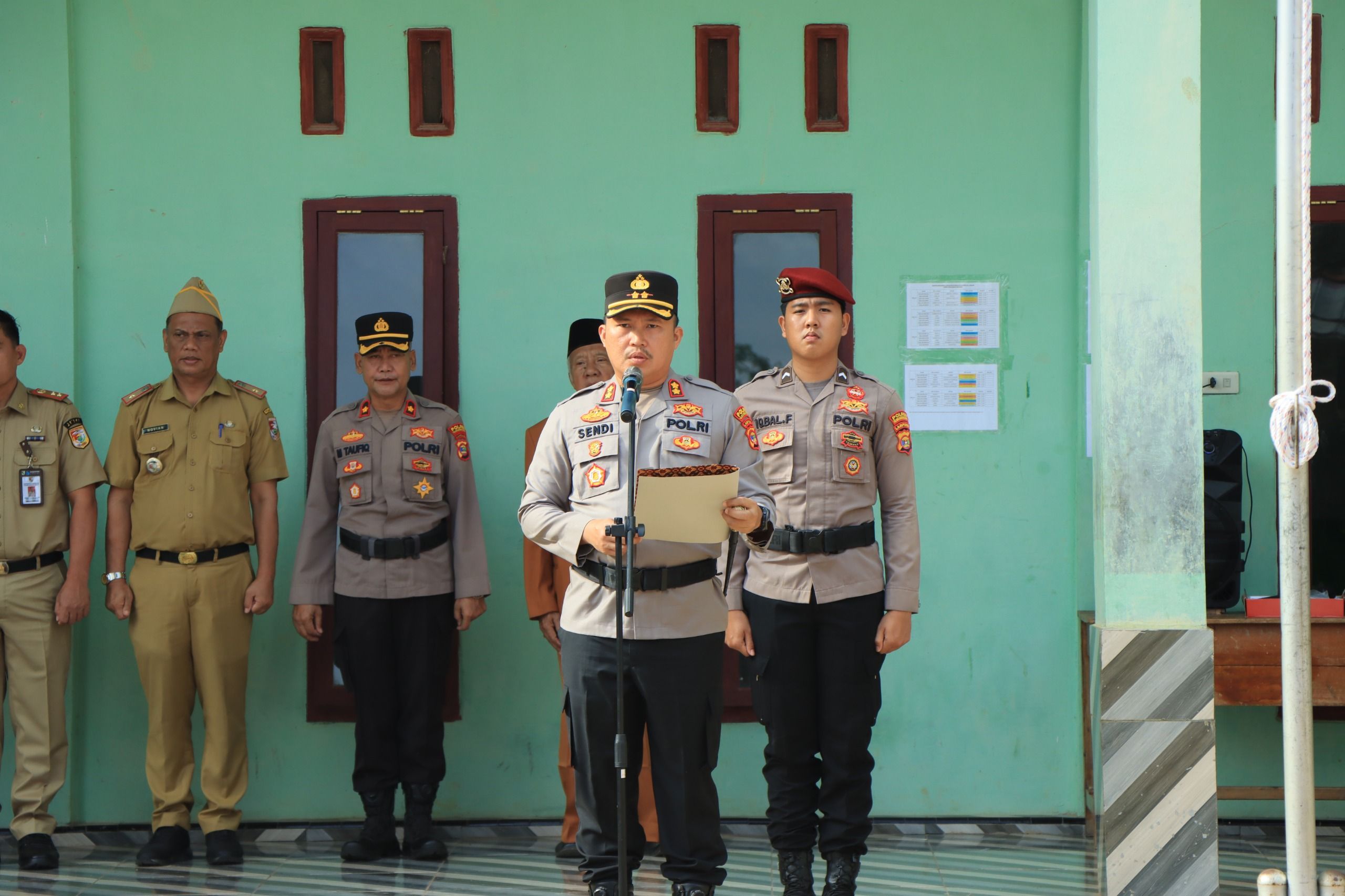 tribratanews.lampung.polri.go.id Tulang Bawang Barat Senin 29 September 2025 Kapolres Tulang Bawang Barat, AKBP Sendi Antoni, S.I.K., M.I.K., bertindak sebagai pembina upacara di SMP Islam Unggulan Al-Falah Panaragan, Senin (29/9/2025) pukul 07.30 WIB. Kegiatan ini merupakan bagian dari program Forkopimda Masuk Sekolah yang digagas guna menanamkan nilai kedisiplinan, wawasan kebangsaan, serta membangun kedekatan antara aparat pemerintahan dengan pelajar.