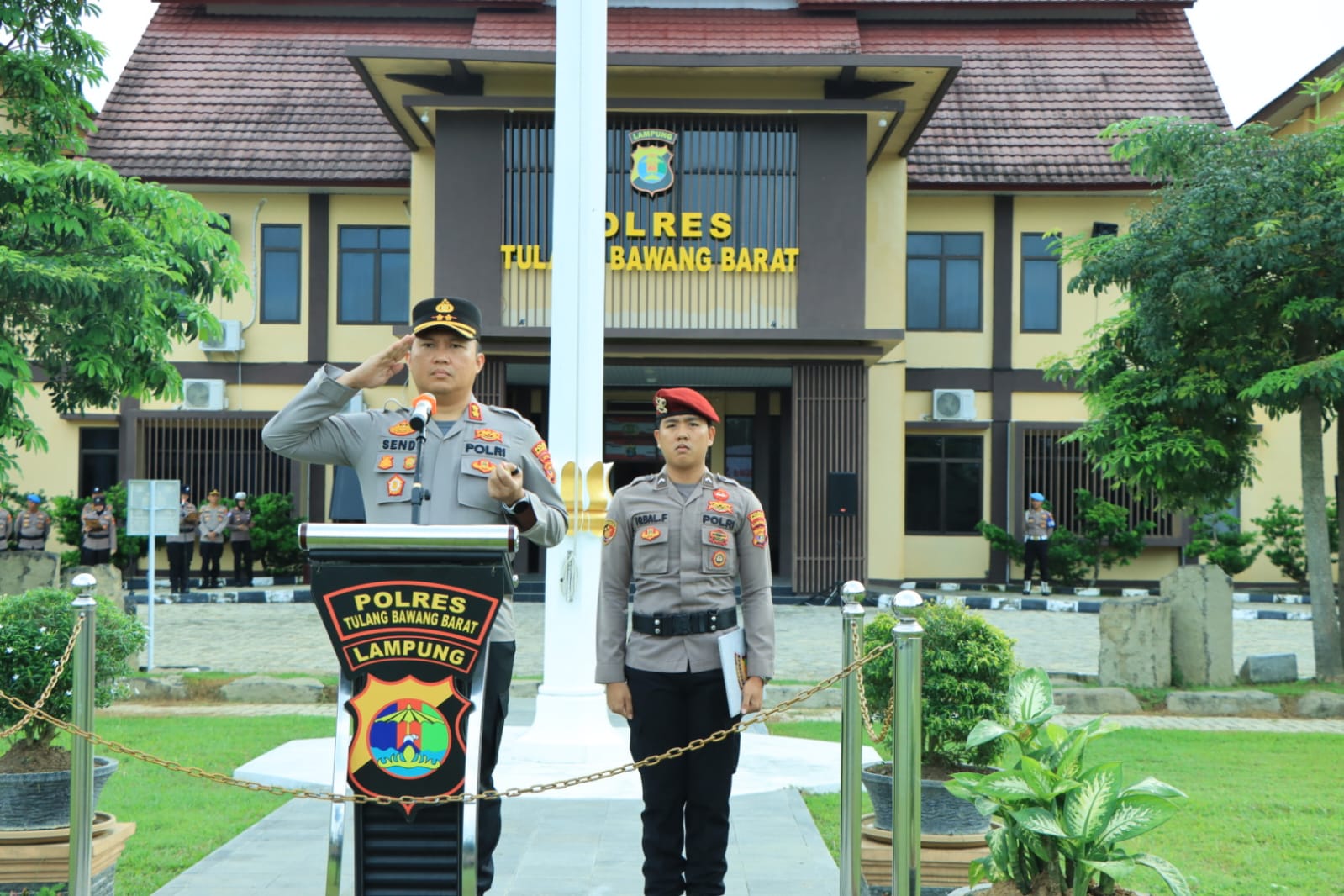 Kapolres Tulang Bawang Barat Pimpin Upacara Sertijab Kabag Ops, Kasat Samapta, Kasat Intelkam dan Kapolsek Lambu Kibang
