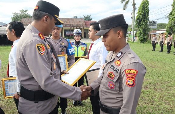 tribratanews.lampung.polri.go.id. Way Kanan, Jumat 19 Desember 2025 Kapolres Way Kanan memberikan piagam penghargaan kepada personel dari masing masing satfung dan Polsek Jajaran Polres Way Kanan yang berprestasi di lapangan apel Polres Way Kanan. Senin (15/12/2025).Selain empat belas anggota berprestasi, penghargaan diberikan juga kepada masyarakat atas prestasinya dengan kategori berdedikasi membantu penanganan pertama dan evakuasi 3 (tiga) personel Polres Way Kanan yang gugur dalam pelaksanaan tugas di Kecamatan Negara Batin Kabupaten Way Kanan. Peserta upacara terdiri dari Pejabat Utama, Kapolsek jajaran, Kasi dan seluruh Perwira Staf serta anggota Brigadir dan Aparatur Sipil Negara Polres Way Kanan beserta perwakilan anggota Polsek Jajaran. Dalam Amanatnya Kapolres menyampaikan ucapan selamat kepada empat belas personel yang telah mendapatkan penghargaan, penghargaan tersebut diberikan atas prestasi dan dedikasi dalam menjalankan tugas disetiap fungsinya masing-masing serta atas dedikasi dan loyalitasnya terhadap institusi Polri. Adapun personel yang menerima penghargaan yakni Kanit 2 Ipda Riki Wahyudi dan lima anggota Satresnarkoba Polres Way Kanan Aipda Noveri Kurniawan, Bripka Rudi Lesmana, Briptu Feby Yoga Pratama, Bripda Daniel Laksana Simanjuntak dan Bripda Agil Fachrezi. Atas prestasinya dengan kategori ungkap kasus peredaran gelap dan penyalahgunaan narkotika golongan I jenis sabu dengan berat bruto sebanyak 40,13 gram di Kelurahan Blambangan Umpu Kec. Blambangan Umpu Kab. Way Kanan. Selanjutnya, enam personel Polsek Baradatu yang menerima penghargaan atas prestasinya dengan kategori ungkap DPO kasus Curas (pencurian dengan kekerasan) di wilayah Polsek Baradatu yakni diberikan kepada Aiptu runandar, Aipda Rico Mangaratua Sitorus, Aipda Daprian Soni, Bripka Firdaus dan Brigpol Faulendra. Bhabinkamtibmas Polsek Banjit Brigpol Fajar Risky menerima penghargaan atas prestasinya dengan kategori bekerja melebihi tugas pokok dan fungsinya serta berdedikasi terhadap masyarakat dengan melakukan pembinaan dan mengajar ngaji terhadap anak – anak yang sedang berhadapan dengan hukum di mushola Polsek Banjit. Personel Bamin Sikeu Polres Way Kanan Brigpol Enang Sumantri dan Bripda Rafael Alexsander Sihombing menerima penghargaan atas prestasinya dengan kategori sebagai operator penanggung jawab dalam rangka pencapaian IKPA 100 % di Wilayah Polda Lampung dan jajaran T.A. 2025. Terakhir diberikan kepada masyarakat di Kecamatan Negara Batin yakni dr. Heltri Mahardika Agustin, dr. M. Syafrial, Dedek Saputra dan Alex Darman. Lebih lanjut, penghargaan ini sebagai bentuk apresiasi yang setingi-tingginya terhadap personel yang berprestasi sehingga diharapkan dapat menjadi triger untuk personel Polri lainnya.