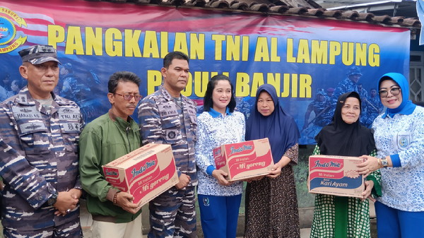 Lanal Lampung Gelar Aksi Sosial, Bagikan Makanan dan Sembako untuk Warga Terdampak Banjir