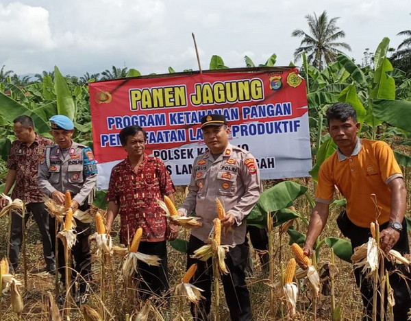 Manfaatkan Lahan Kosong, Polsek Kalirejo Panen Jagung Dukung Ketahanan Pangan