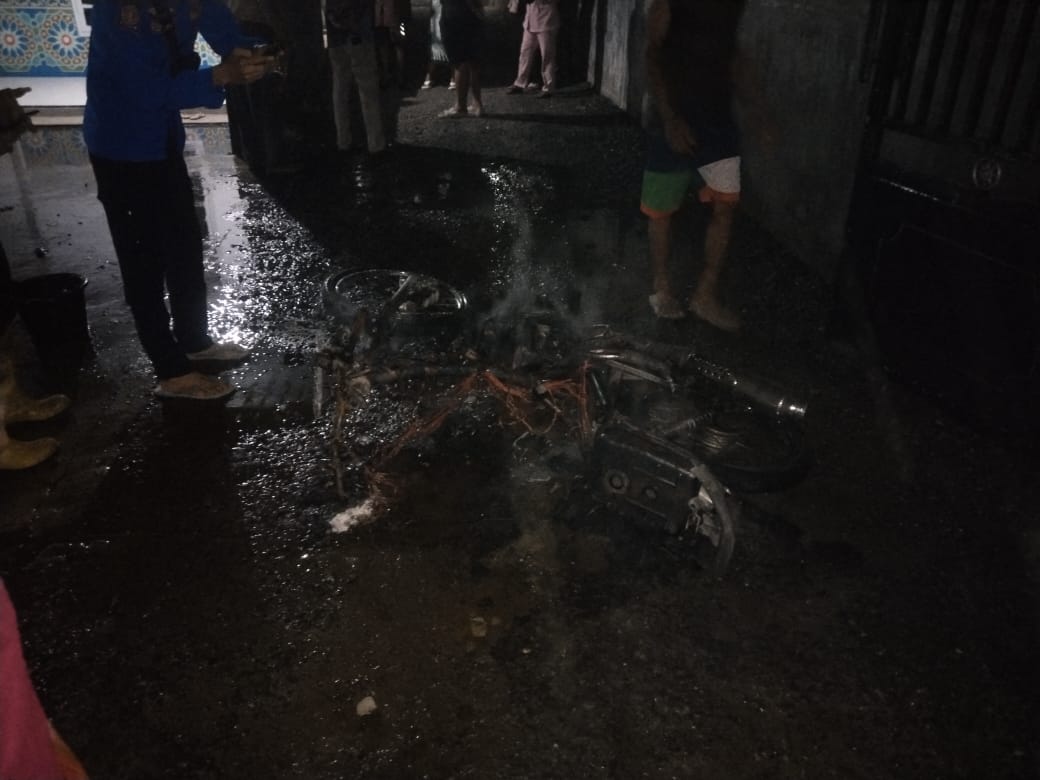Menurut keterangan aparat, kerugian ditaksir mencapai Rp3.000.000, akibat motor hangus terbakar hampir seluruhnya.