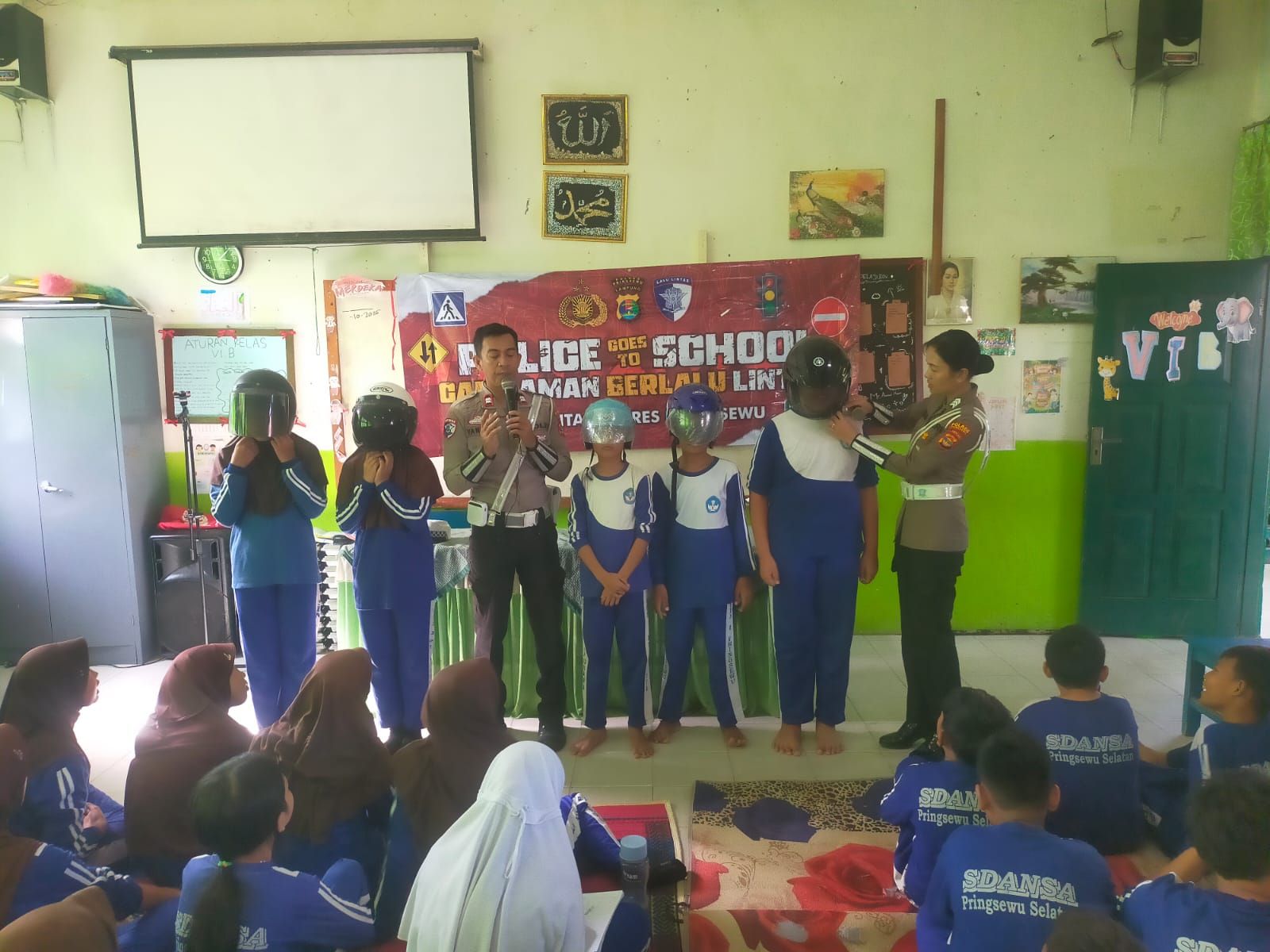 tribratanews.lampung.polri.go.id. Pringsewu Selasa 25 Nopember 2025 – Memasuki hari kesembilan pelaksanaan Operasi Zebra 2024, jajaran Polres Pringsewu terus mengintensifkan berbagai langkah untuk meningkatkan kesadaran dan kedisiplinan masyarakat dalam berlalu lintas. Tidak hanya melalui tindakan penegakan hukum, upaya preventif dan edukatif juga menjadi fokus utama dalam operasi yang digelar serentak di seluruh Indonesia ini.Salah satu bentuk kegiatan yang dilakukan adalah edukasi dan sosialisasi tertib berlalu lintas kepada berbagai kelompok masyarakat. Pada Selasa (25/11/2025), petugas Satuan Lalu Lintas Polres Pringsewu melaksanakan dikmas lantas di SDN 1 Pringsewu Selatan, memberikan pemahaman sejak dini kepada para pelajar mengenai pentingnya keselamatan di jalan raya. Selain itu, petugas juga melakukan penyebaran leaflet imbauan keselamatan di sejumlah pusat perbelanjaan dan area publik lainnya yang kerap dipadati masyarakat. Warga yang ditemui diberi penjelasan mengenai pelanggaran yang menjadi prioritas penindakan dalam Operasi Zebra, seperti tidak memakai helm, Sabuk keselamatan, penggunaan knalpot brong, hingga menggunakan ponsel saat berkendara.