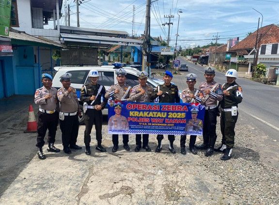 tribratanews.lampung.polri.go.id. Way Kanan, Jumat 28 Nopember 2025 Dalam rangka Ops Zebra Krakatau 2025, Satlantas Polres Way Kanan bersinergi dengan TNI dari CPM Subdenpom Way Kanan menggelar razia gabungan kendaraan di Jalinsum Sp.4 Negeri Baru Kecamatan Umpu Semenguk, Way Kanan, pada Jumat (28/11/2025).Kegiatan penertiban yang menyasar 9 prioritas pelanggaran ini dilakukan untuk menekan potensi kecelakaan fatal sekaligus meningkatkan kedisiplinan pengendara di Jalinsum (Jalan Lintas tengah Sumatera) Way Kanan.