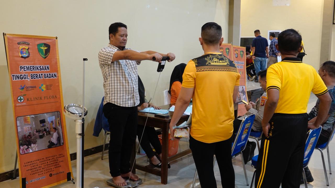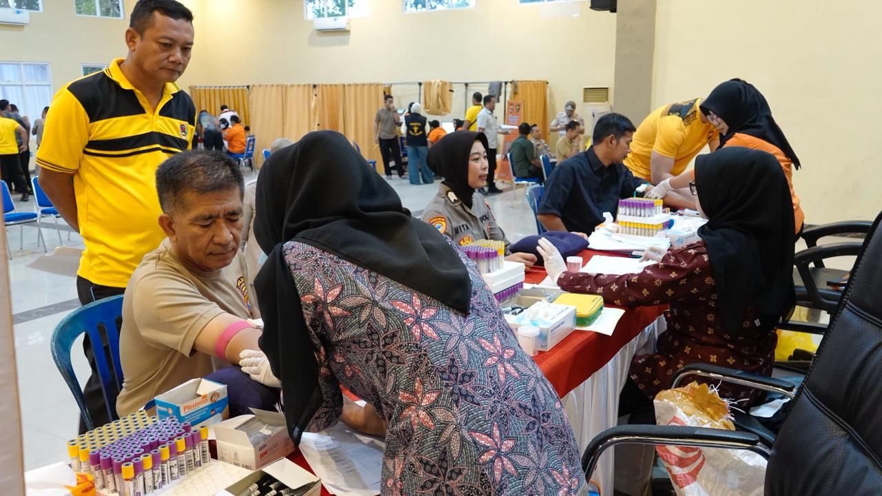 tribratanews.lampung.polri.go.id. Lampung Tengah, Minggu 25 Januari 2026 — Dalam rangka menjaga dan memelihara kondisi kesehatan personel, Polres Lampung Tengah melaksanakan kegiatan Pemeriksaan Kesehatan (Rikkes) Berkala yang dilaksanakan oleh Tim Biddokkes Polda Lampung bersama Dokkes Polres Lampung Tengah.Kegiatan tersebut digelar pada Jumat pagi (23/1/26) bertempat di Aula Admani Wedhana Mapolres setempat, dan diikuti oleh personel Polres Lampung Tengah, ASN, serta Polsek jajaran.