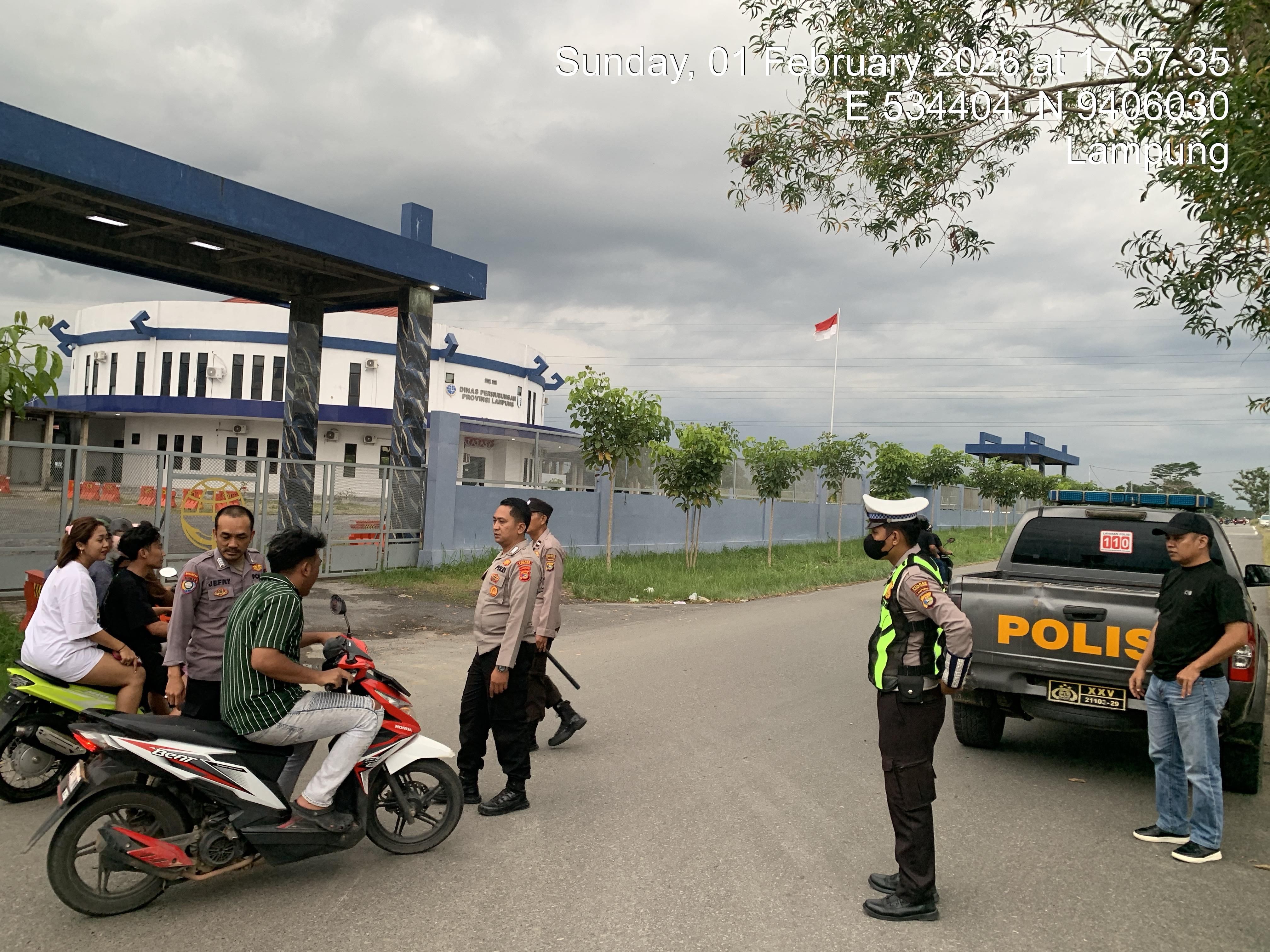 tribratanews.lampung.polri.go.id Lampung Selatan, Senin 02 Pebruari 2026,   – Personel Satuan Lalu Lintas (Satlantas) Polres Lampung Selatan melaksanakan patroli sore hari dalam rangka menjaga keamanan, keselamatan, ketertiban, dan kelancaran lalu lintas (kamseltibcarlantas) di wilayah Desa Sabah Balau, Kabupaten Lampung Selatan, Minggu (1/2/2026).