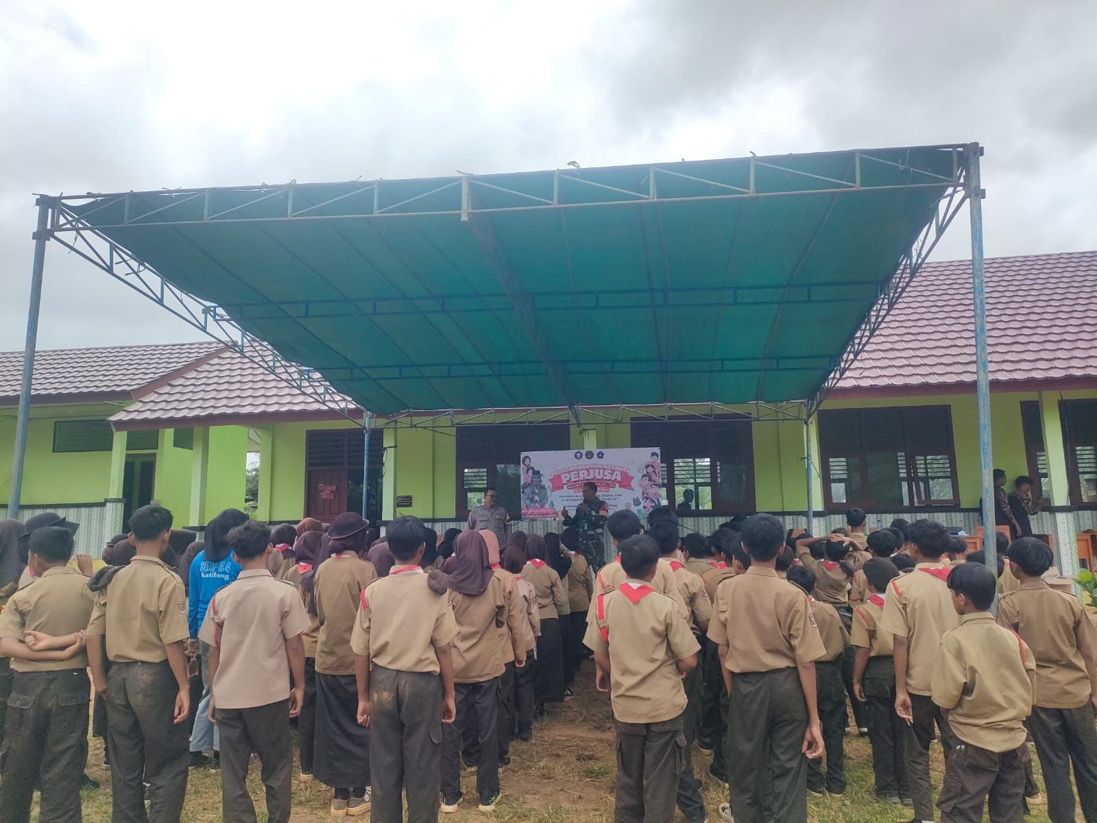 Kegiatan berlangsung di lapangan sekolah setempat pada pukul 10.00 WIB. Dengan penuh semangat, Aiptu Alex memberikan materi seputar nilai–nilai kebangsaan, cinta tanah air, bahaya narkoba, serta pencegahan kenakalan remaja kepada para peserta didik.