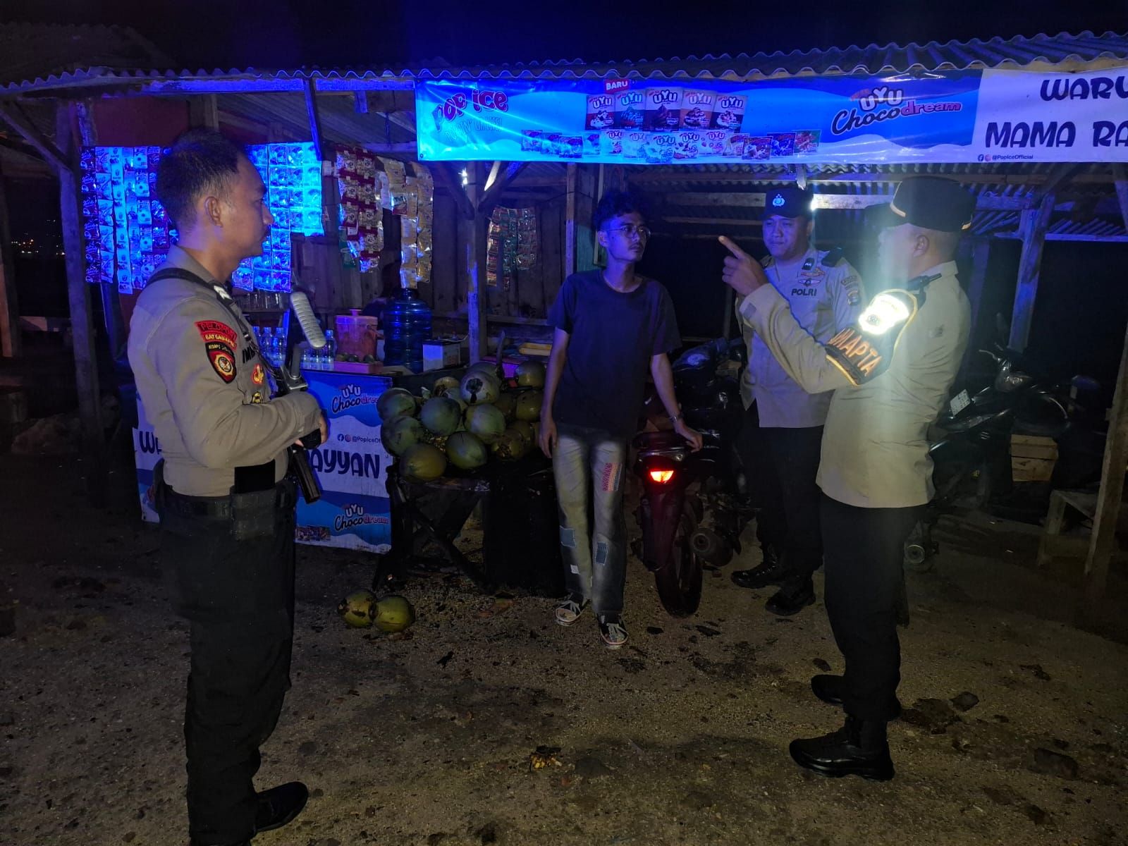 Piket Pamapta Polres Lampung Selatan Patroli Dini Hari di Pantai Senaya, Antisipasi Tawuran