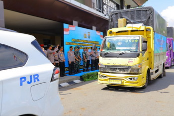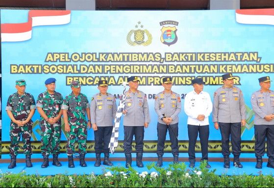 tribratanews.lampung.polri.go.id. Lampung – Polda Lampung dalam rangka apel ojek online kamtibmas yang dipimpin langsung oleh Wakapolri Komjen Pol Dedi Prasetyo, juga melepas pemberangkatan bantuan sosial kepada wilayah yang terdampak bencana alam di Sumatra Barat. Rabu, (3/12/2025)Pemberangkatan ini berlangsung di halaman Polda Lampung yang diikuti oleh Kapolda Lampung dan Pejabat Utama Mabes Polri. Total bantuan yang disalurkan meliputi berbagai kebutuhan pokok dan kebutuhan lainnya yang sangat dibutuhkan oleh masyarakat terdampak bencana.