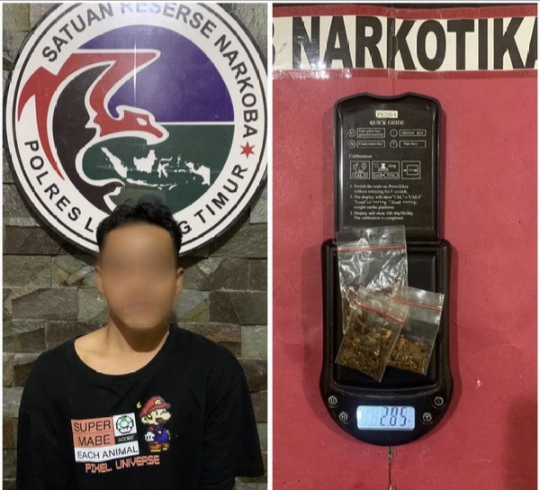 https://tribratanews.lampung.polri.go.id. Lampung timur - Sat Res Narkoba Polres Lamtim Polda Lampung, membawa Paksa Seorang pemuda warga Batanghari Nuban, karena diduga terlibat tindak pidana penyalahgunaan Narkoba.Kapolres Lampung timur AKBP M Rizal Muchtar S.H., S.I.K., M.H. didampingi Kasat Narkoba IPTU Riki Setiawan pada Selasa (11/06/24) menjelaskan, tersangka berinisial RK (24) warga Desa Kedaton Kecamatan Batanghari Nuban kabupaten Lampung Timur. Satuan Res Narkoba Polres Lampung Timur menangkap Pelaku pada hari Senin (10/06/24) sekira pukul 00.30 wib di desa Kedaton Induk kecamatan Batanghari Nuban Kabupaten Lampung Timur, tanpa melakukan perlawanan. Kapolres menambahkan dari hasil penangkapan tersebut, petugas Kepolisian melakukan penggeledahan badan dan ditemukan barang bukti berupa 3 (tiga) bungkus plastik klip bening berukuran kecil yang didalamnya berisi tembakau diduga narkotika jenis tembakau sintetis dengan berat bruto 2.85 gram, 2 (duah) buah lintingan kertas papir putih yang didalamnya dudiga keras berisikan tembakau sintetis dan 1 (satu) buah bundel kertas papir. setelah dilakukan Intograsi diakui barang tersebut milik tersangka. "Selanjutnya tersangka dan barang bukti dibawa ke Sat Res Narkoba Polres Lampung timur untuk diproses secara hukum dengan Pasal 114 dan / atau Pasal 112 Undang - undang RI nomor 35 tahun 2009 tentang Narkotika”.