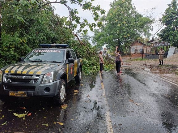 tribratanews.lampung.polri.go.id. Way Kanan, Selasa 07 Oktober 2025 Diduga hujan lebat disertai angin kencang sebuah pohon Jati tumbang di tengah Jalan Lintas Sumatera (Jalinsum) Kampung Gedung Pakuon Kecamatan Baradatu Kabupaten Way Kanan. Selasa (07/10/2025).Peristiwa pohon tumbang terjadi pada Senin sore lalu sekitar pukul 15.30 WIB. Jajaran Polsek Baradatu dan Satlantas Polres Way Kanan yang mendapat laporan dari masyarakat lansung menuju ke lokasi untuk melakukan evakuasi sekaligus melakukan pengaturan Lalu Lintas. Tibanya dilokasi pohon tumbang, personel Kepolisian dibantu warga sekitar bergotong royong mengevakuasi batang pohon tumbang yang sempat sedikit mengganggu pengguna jalan yang melintas jalan tersebut. Kapolres Way Kanan AKBP Adanan Mangopang melalui Kapolsek Baradatu AKP Herwin Afrianto mengatakan, diduga pohon tersebut sudah lapuk dimakan usia hingga tumbang di terpa angin kencang,”ungkapnya. “Alhamdulillah, proses evakuasi pohon yang tumbang di Jalinsum sekitar pukul 17.00 WIB selesai dibersihkan dan tidak ada kendala, jadi kendaraan yang melintas sudah berjalan lancar dari dua arah, situasi aman dan terkendali. Pihaknya mengimbau kepada seluruh masyarakat pengguna jalan agar selalu berhati – hati dan tetap waspada pada saat melintas di Jalinsum saat hujan disertai angin kencang supaya tidak terjadi hal-hal yang tidak diinginkan. Ini tentunya menjadi harapan kita semua,”pungkasnya.