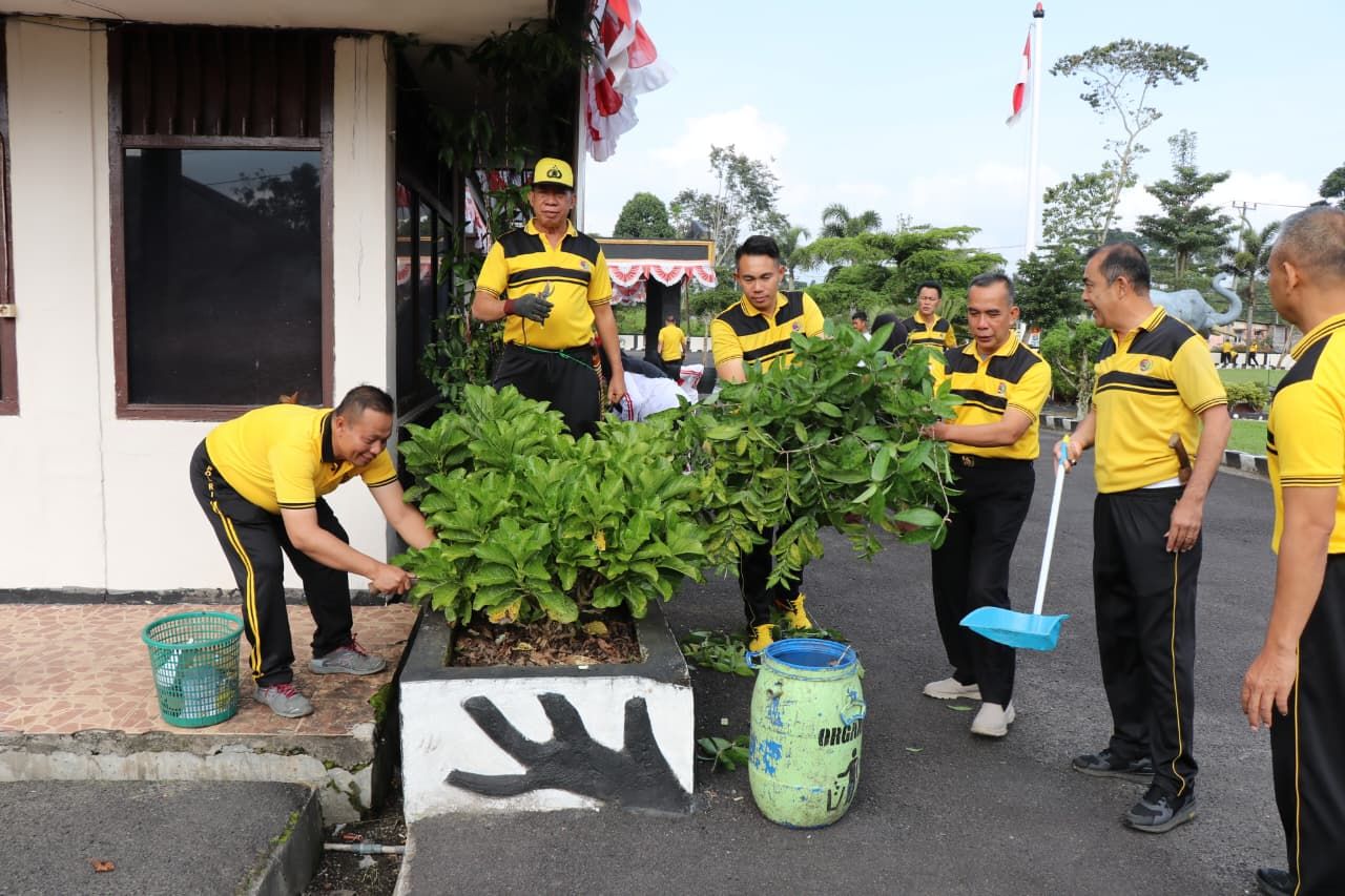 Tribratanews Lampung polri go id Lampung Barat, Minggu 28 September 2925 – Polres Lampung Barat melaksanakan aksi Hari Bersih-Bersih Sedunia dalam rangka memperingati _World Cleanup Day_ (WCD) tahun 2025 dengan mengusung tema “Menuju Indonesia Bersih 2029”. Kegiatan tersebut digelar pada Sabtu (27/9/2025) pukul 08.00 WIB hingga selesai, terpusat di lingkungan Polres Lampung Barat.Aksi bersih-bersih dilakukan secara gotong royong dengan sasaran halaman, drainase, serta area fasilitas umum di sekitar Mapolres. Seluruh personel turut ambil bagian dalam kegiatan, dengan mengumpulkan sampah plastik, dedaunan, serta membersihkan saluran air agar tetap lancar. Kapolres Lampung Barat, AKBP Rinaldo Aser, S.H., S.I.K., M.Si., menjelaskan bahwa kegiatan ini merupakan wujud nyata dukungan Polres Lampung Barat terhadap gerakan peduli lingkungan. “Melalui kegiatan ini kami ingin mengajak seluruh masyarakat agar semakin peduli menjaga kebersihan lingkungan. Dengan dimulai dari lingkungan kita sendiri, harapannya budaya hidup bersih bisa terus berkembang menuju Indonesia yang bersih di tahun 2029,” ucap Kapolres. Selain itu, Kapolres juga menegaskan bahwa kepedulian terhadap kebersihan tidak boleh hanya dilakukan saat momentum tertentu saja, tetapi harus menjadi kebiasaan sehari-hari. Dengan begitu, lingkungan akan tetap sehat, nyaman, dan jauh dari potensi bencana akibat sampah maupun drainase tersumbat. Aksi bersih-bersih ini mendapat apresiasi dari masyarakat sekitar, yang melihat langsung kepedulian anggota Polri dalam menjaga lingkungan. Kegiatan ditutup dengan pengangkutan sampah hasil kerja bakti menggunakan armada truk kebersihan, untuk kemudian dibawa ke tempat pembuangan akhir (TPA).